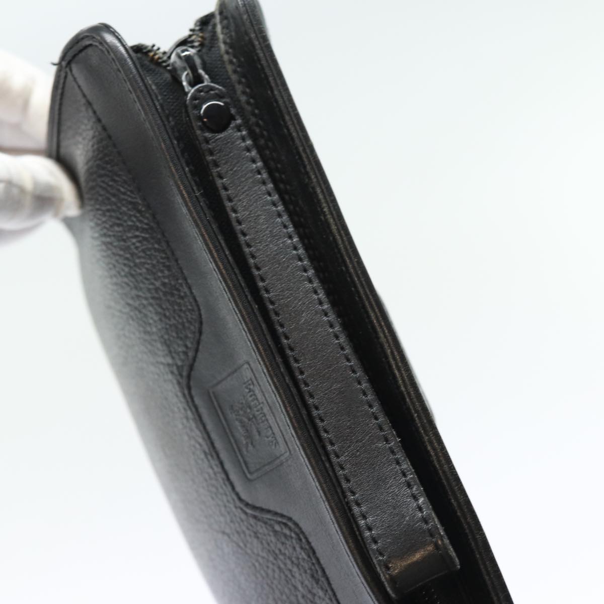 Top Quality BURBERRYSs Clutch Bag Leather Black Auth bs15805