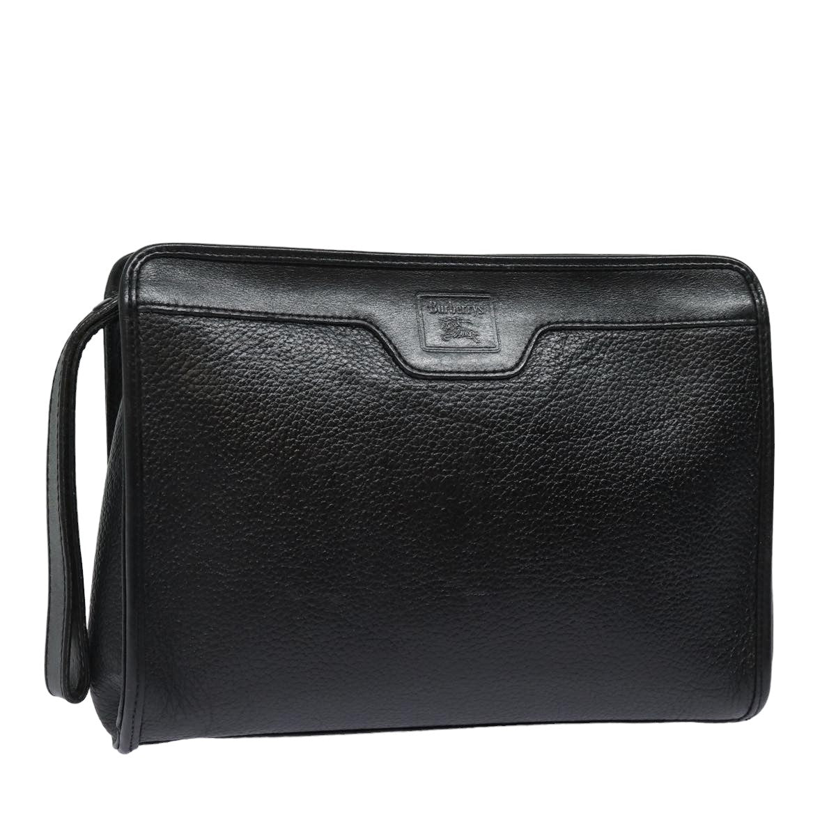 BURBERRYSs Clutch Bag Leather Black Auth bs15805