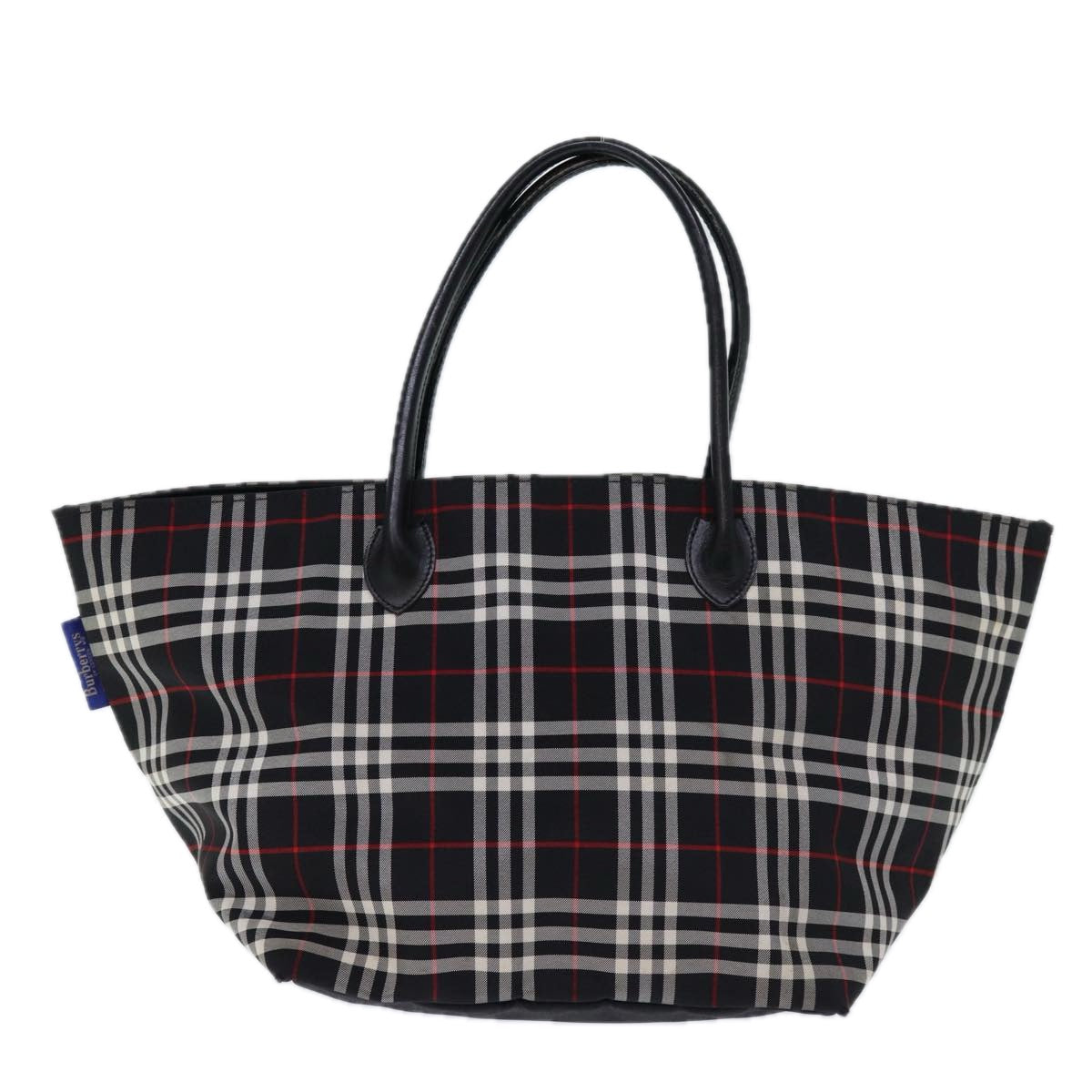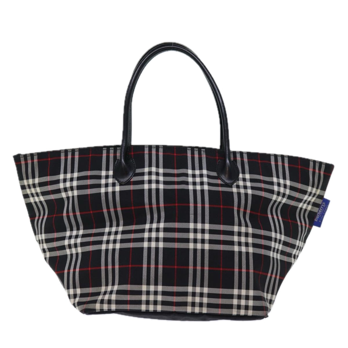 BURBERRYSs Nova Check Blue Label Tote Bag Nylon Black White Auth bs14251