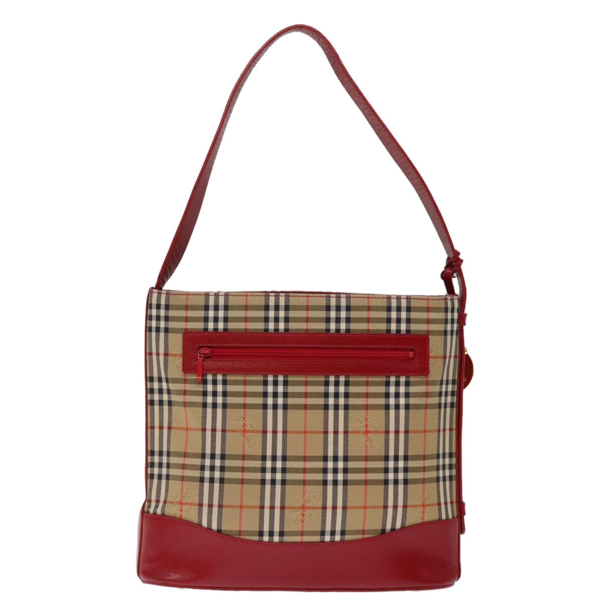 Top Quality BurberrySs Nova Check Shoulder Bag Canvas Beige Red Auth 74385