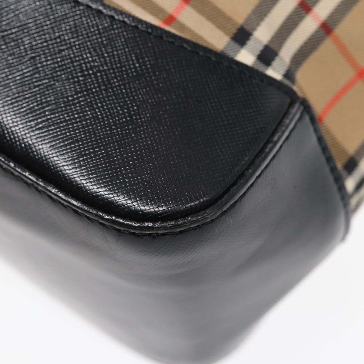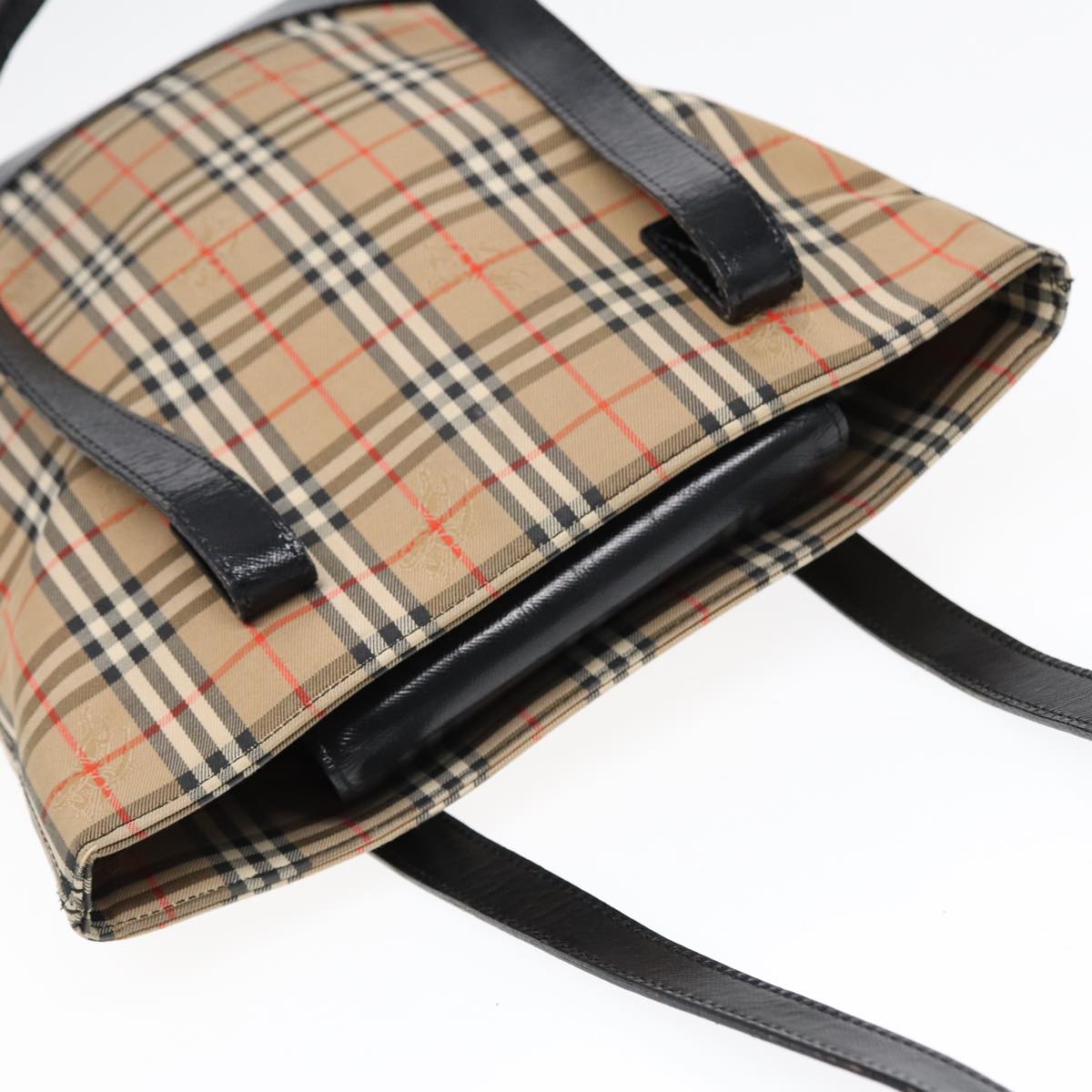 BURBERRYSs Nova Check Tote Bag Canvas Leather Beige Black gold Auth 87170