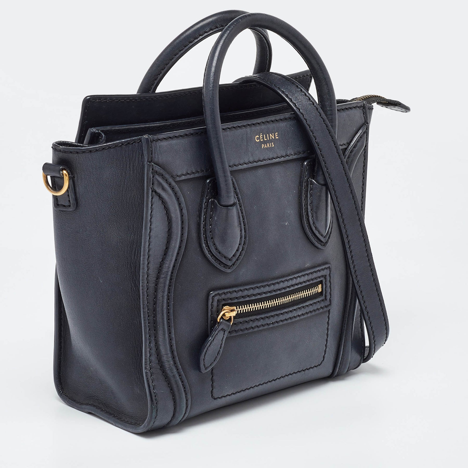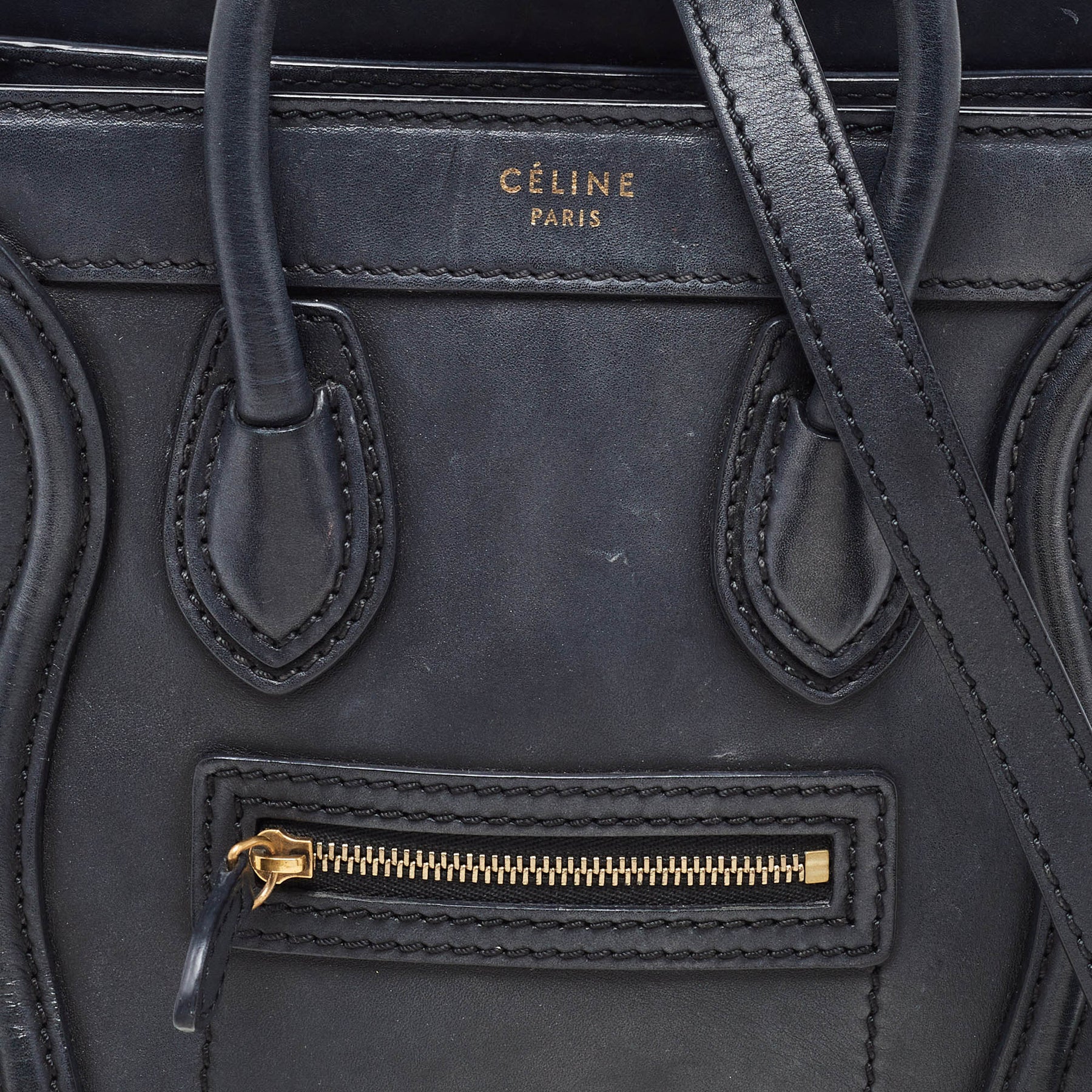 CELINE Black Leather Nano Luggage Tote