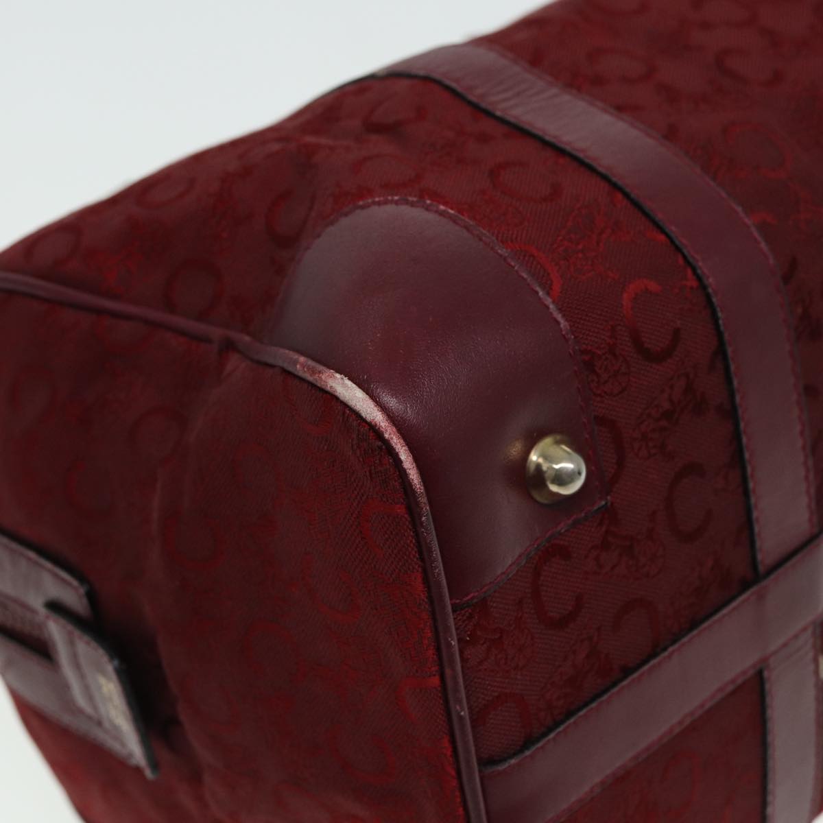 CELINE C Macadam Canvas Boston Bag Red Auth 81013