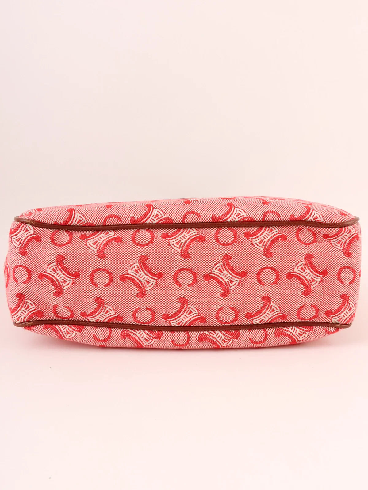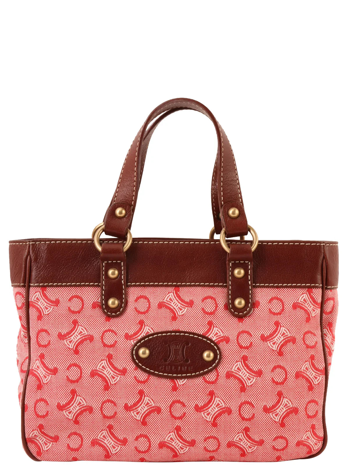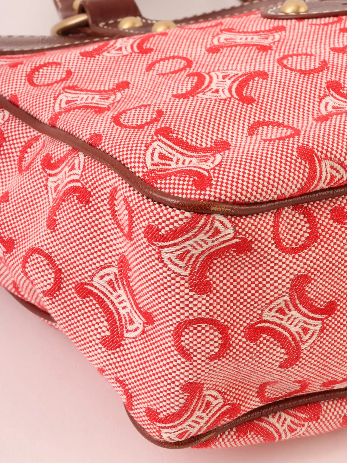 CELINE C Macadam Pattern Logo Embossed Top Handle Bag Red/Brown