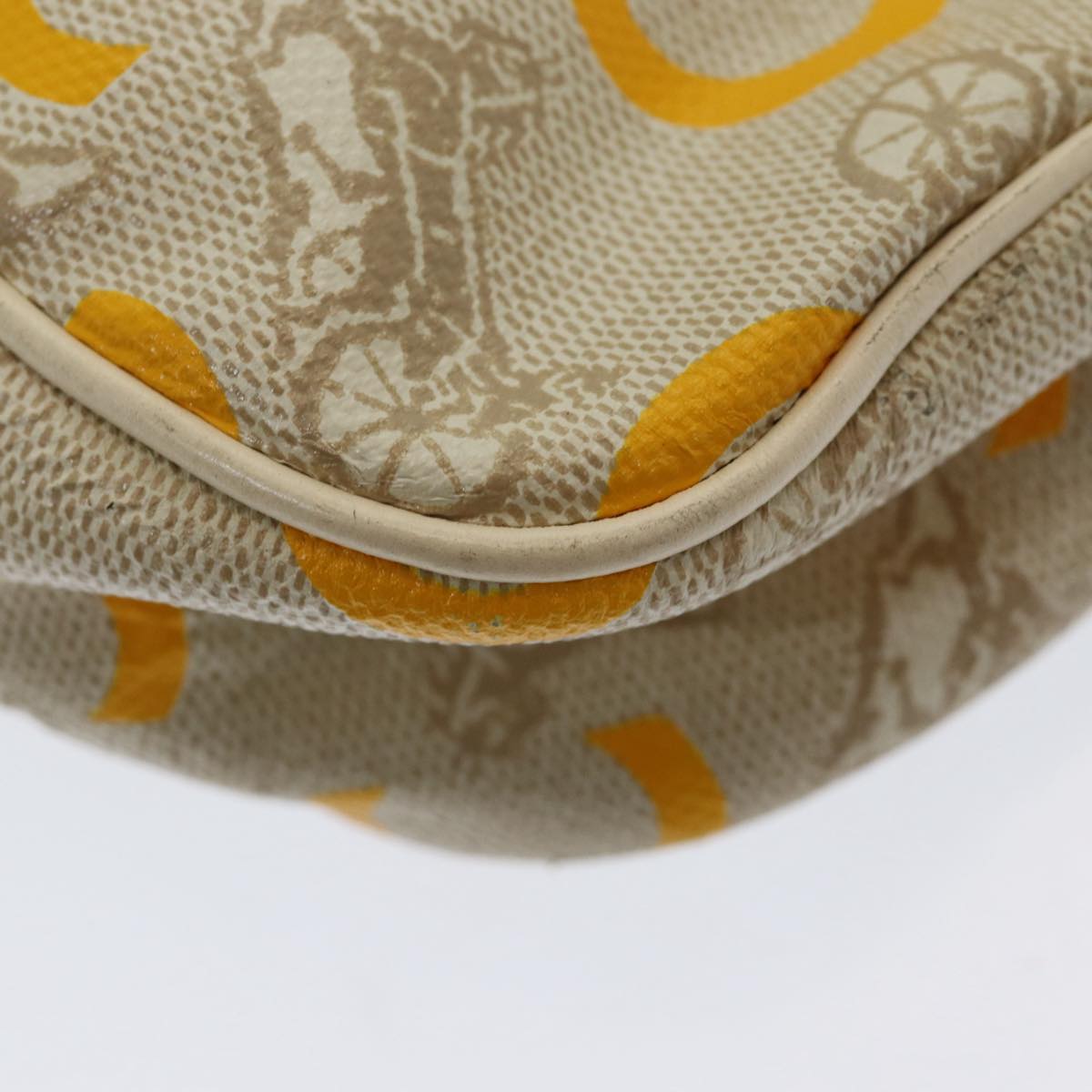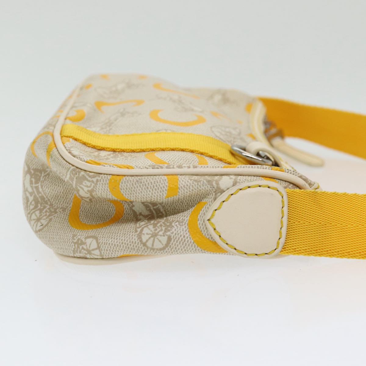 CELINE C Sulky Hand Bag Coated Canvas Silver Beige Auth 85696