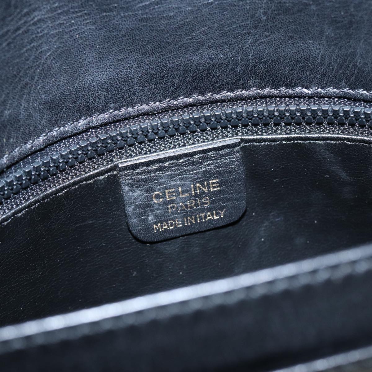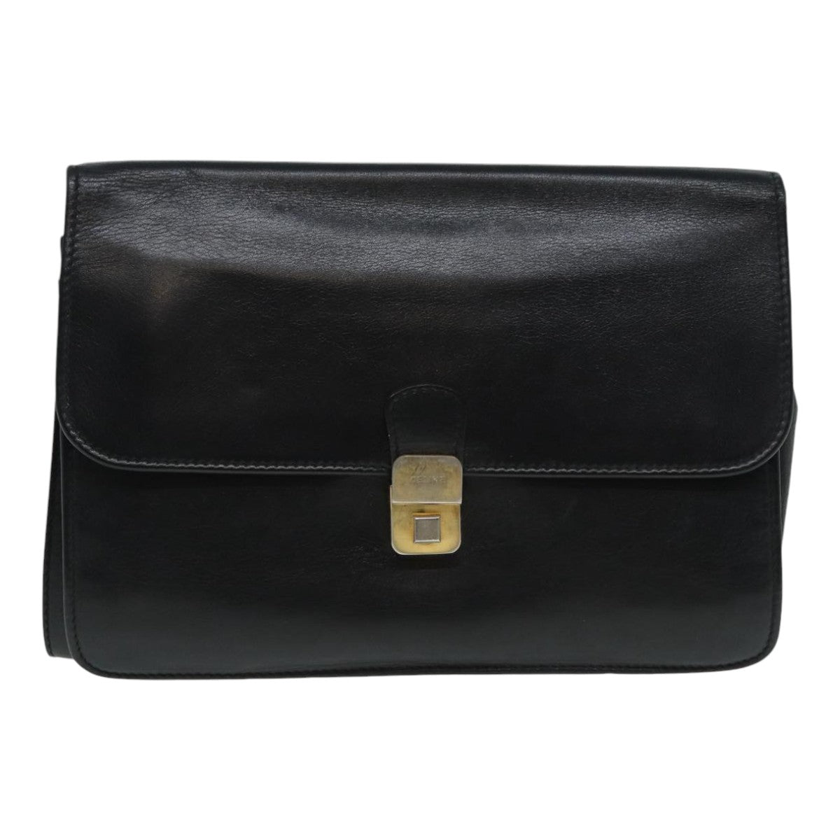 CELINE Clutch Bag Leather Black Gold Auth bs17759