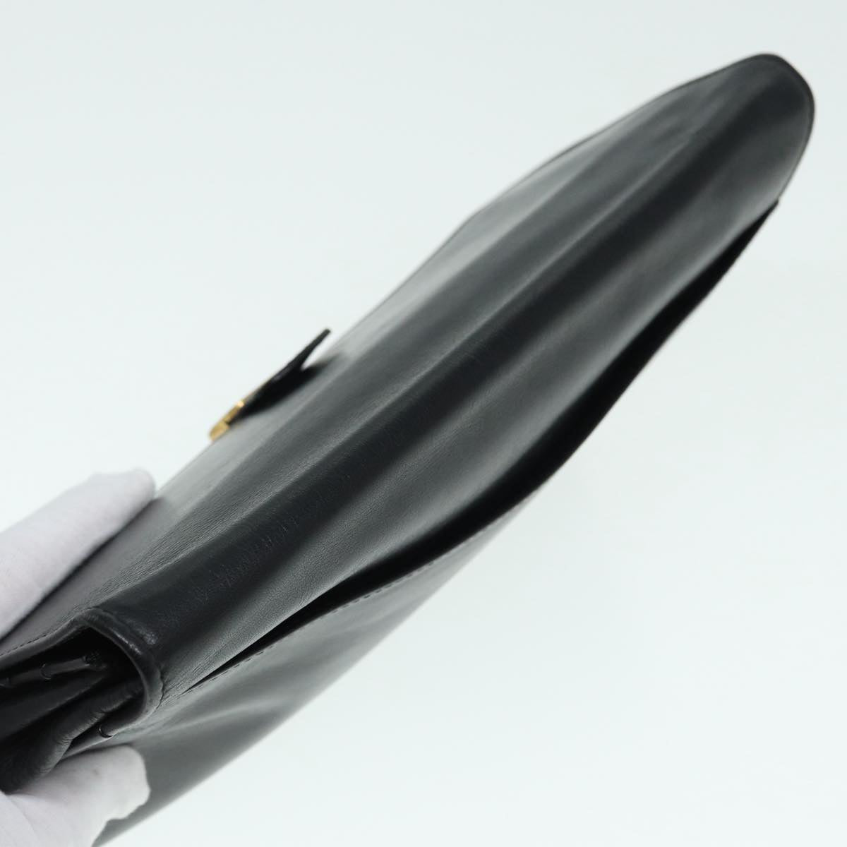 Top Quality Celine Clutch Bag Leather Black Gold Auth bs17759