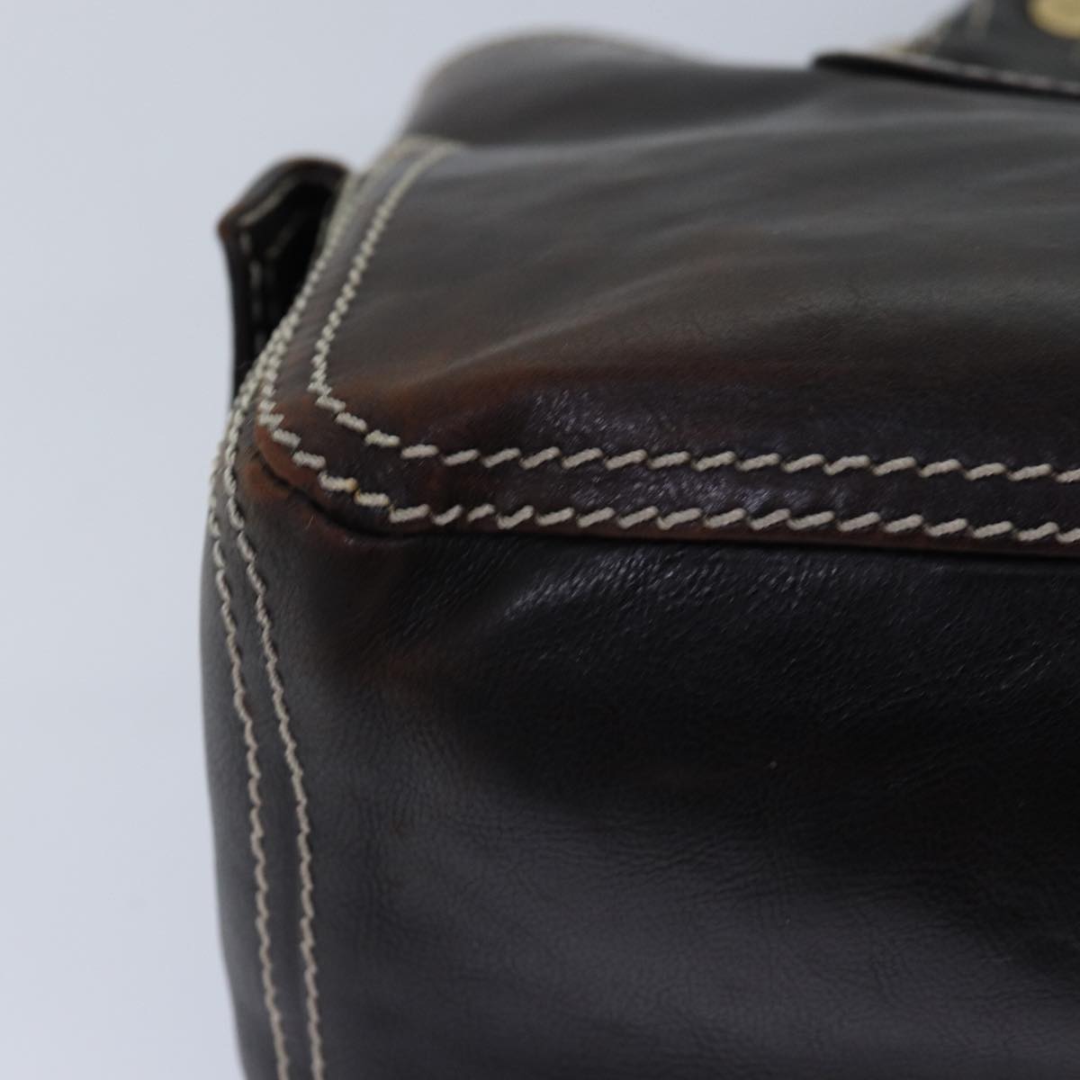CELINE Hand Bag Leather Brown Gold Auth 89146