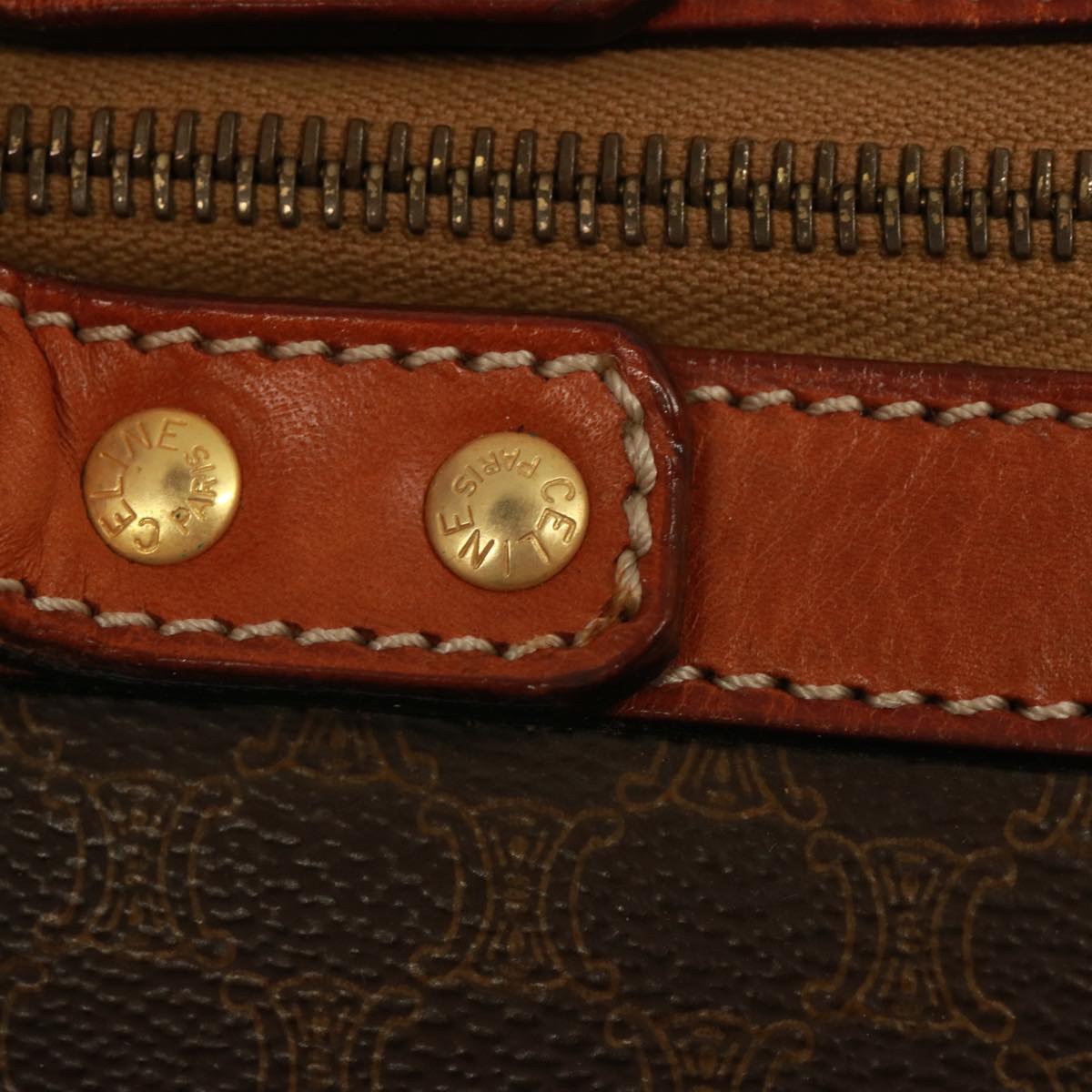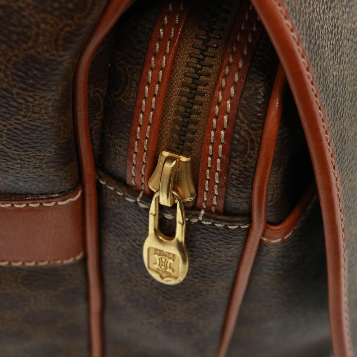 CELINE Macadam Canvas Boston Bag PVC 2way Brown Auth 73841
