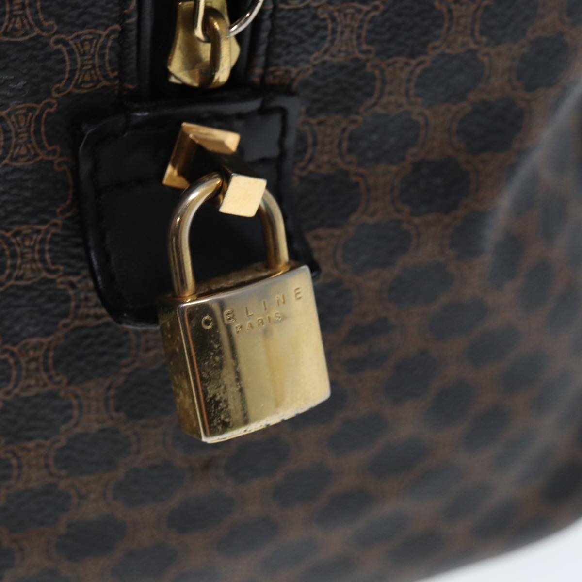 CELINE Macadam Canvas Boston Bag PVC Leather Black Brown Auth yk13042