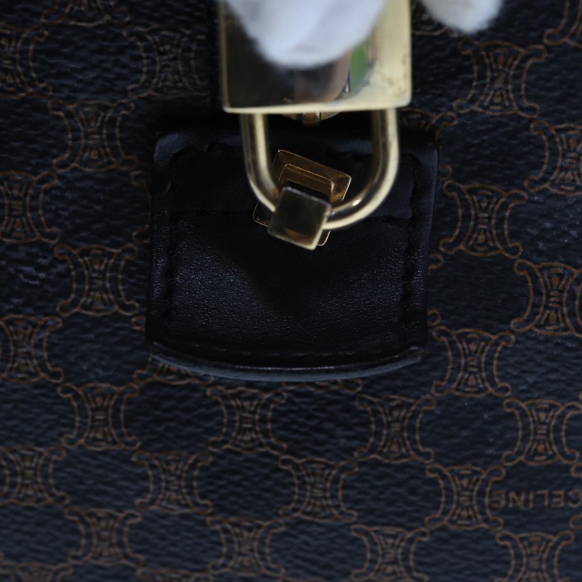 Top Quality Celine Macadam Canvas Boston Bag PVC Leather Black Brown Auth yk13042