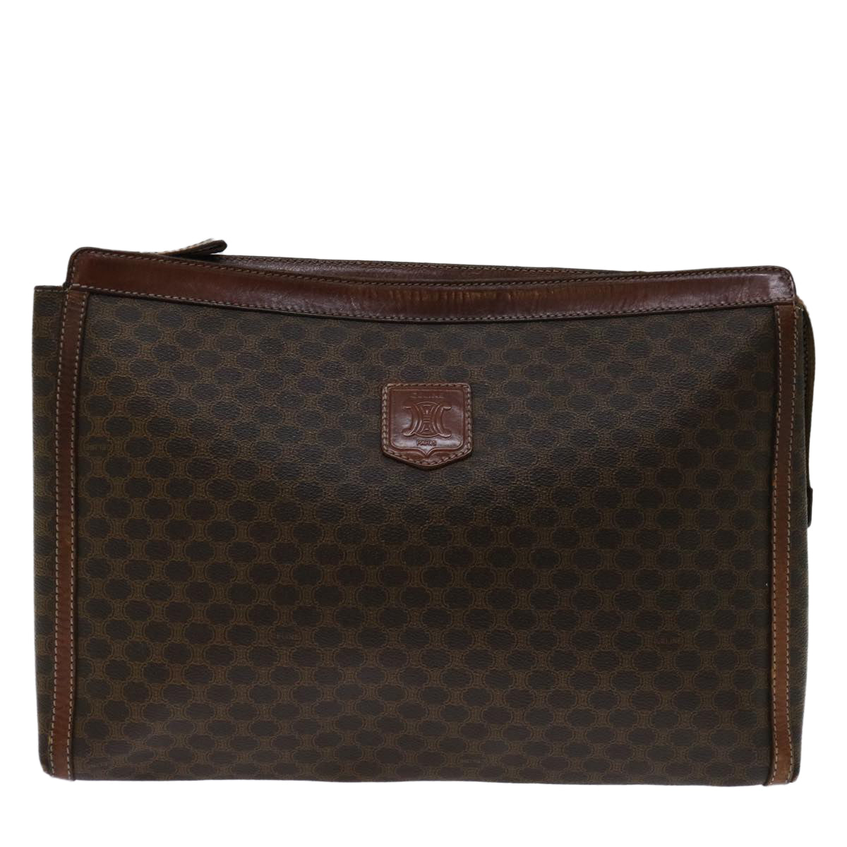 CELINE Macadam Canvas Clutch Bag PVC Brown Auth 68613