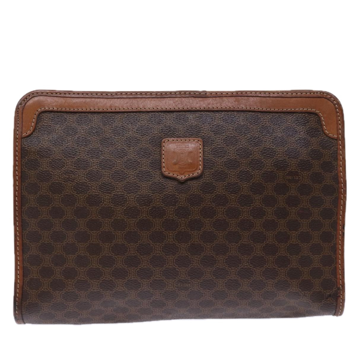 CELINE Macadam Canvas Clutch Bag PVC Brown Auth 72806