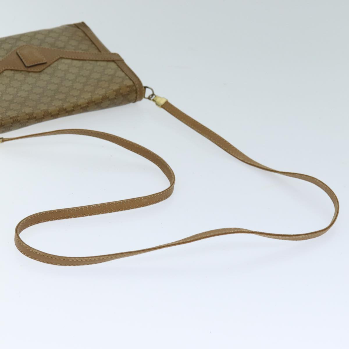 CELINE Macadam Canvas Shoulder Bag Beige Auth bs14109