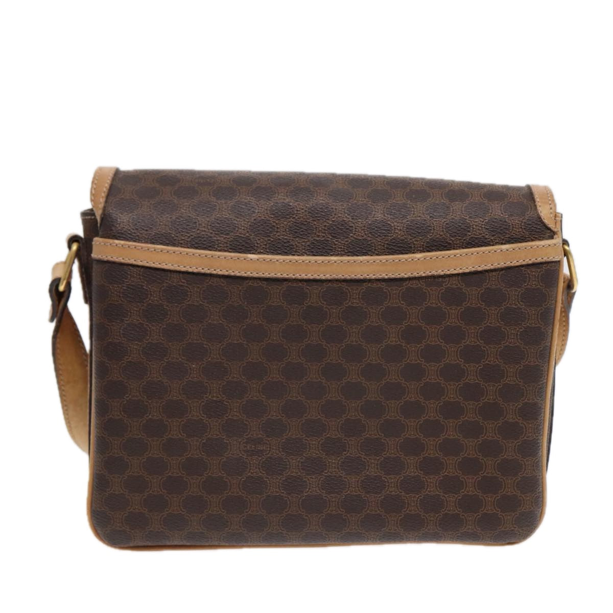 CELINE Macadam Canvas Shoulder Bag PVC Leather Brown Gold Auth bs17401