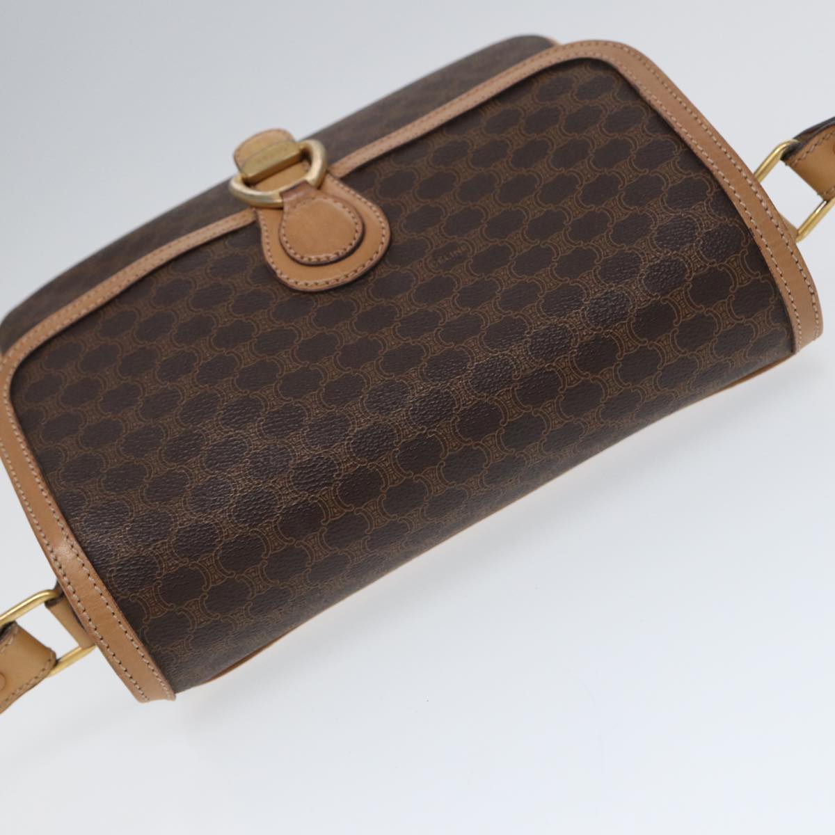 Top Quality Celine Macadam Canvas Shoulder Bag PVC Leather Brown Gold Auth bs17401