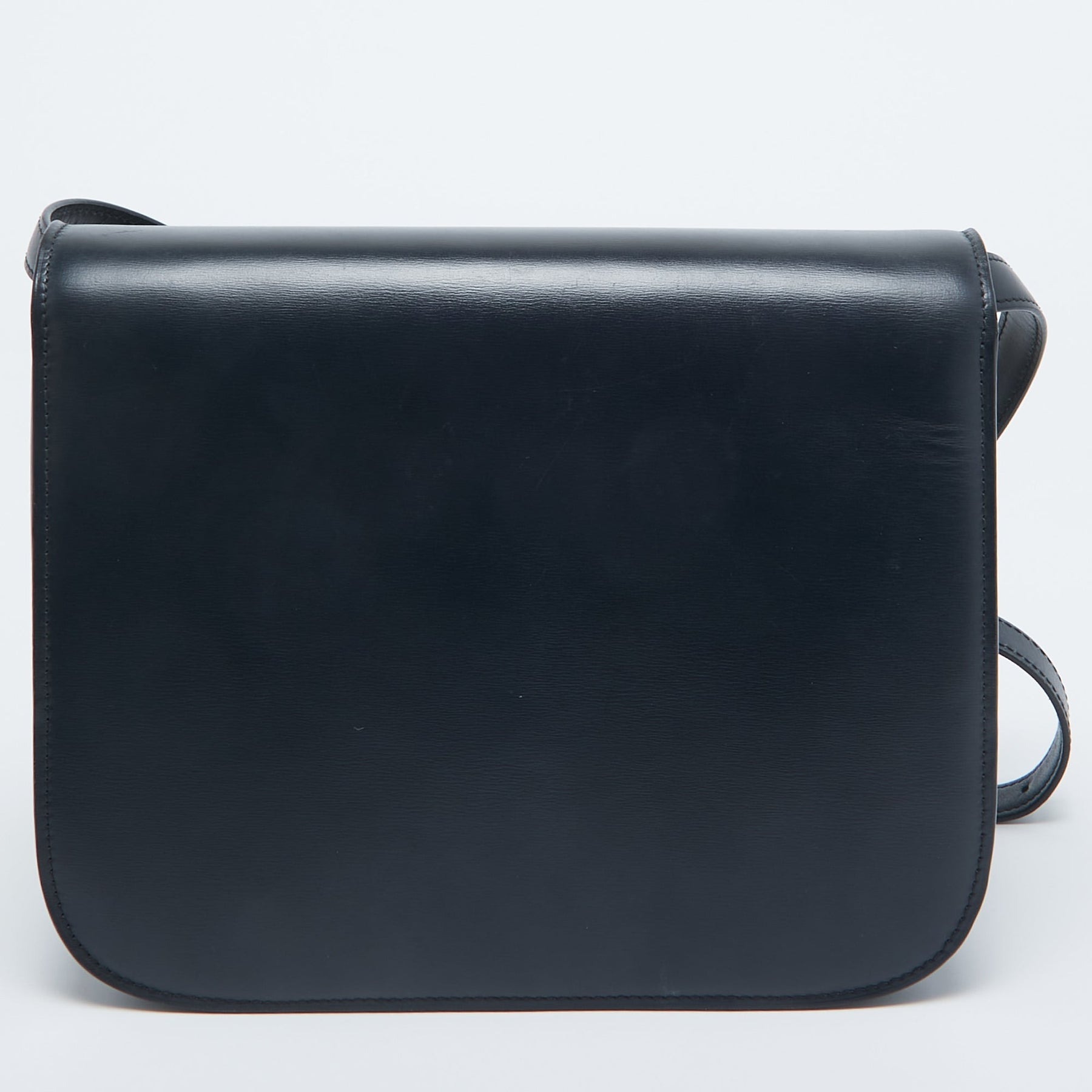 CELINE Navy Blue Leather Medium Classic Box Shoulder Bag