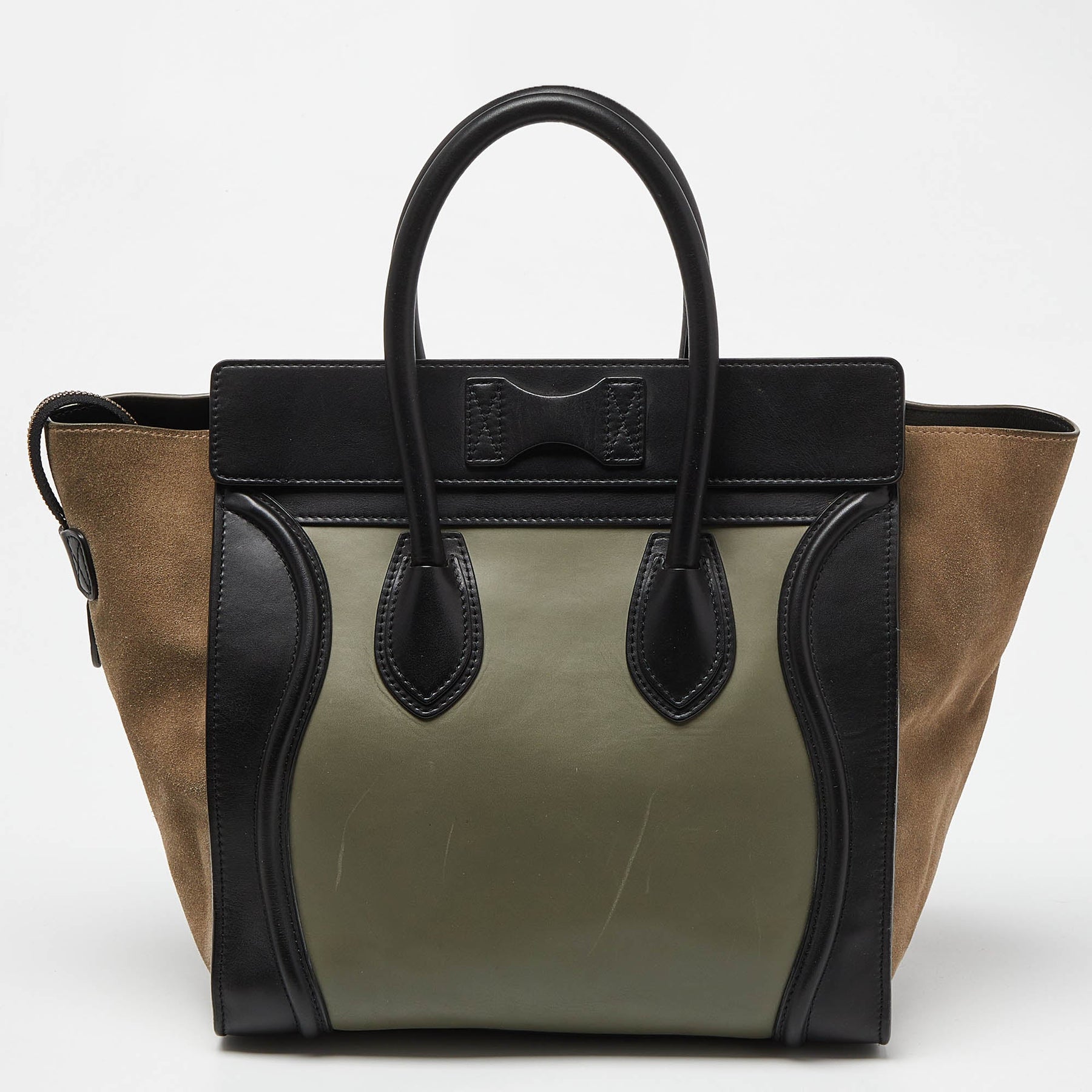 CELINE Tricolor Leather and Suede Mini Luggage Tote