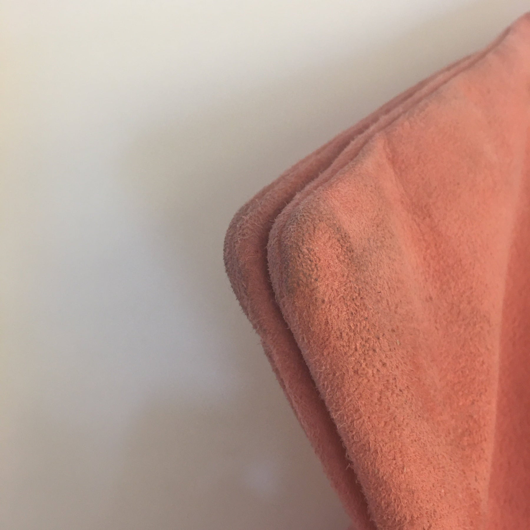 This elegant shoulder bag is finely crafted of Suede material in Pink with opaque silver hardware