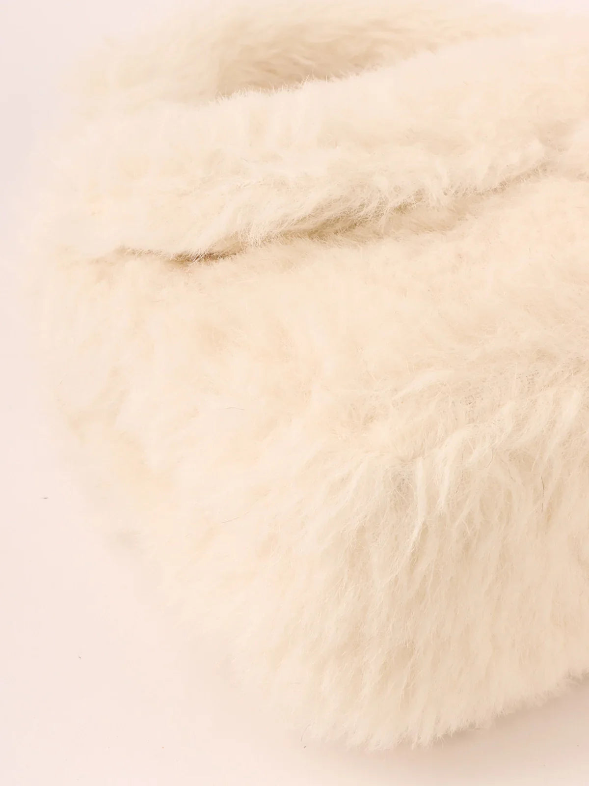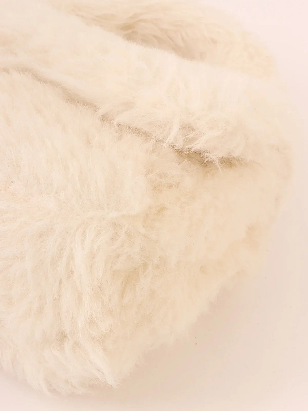 CHANEL Around 1992 Made Fur Turn-Lock Top Handle Bag Off White