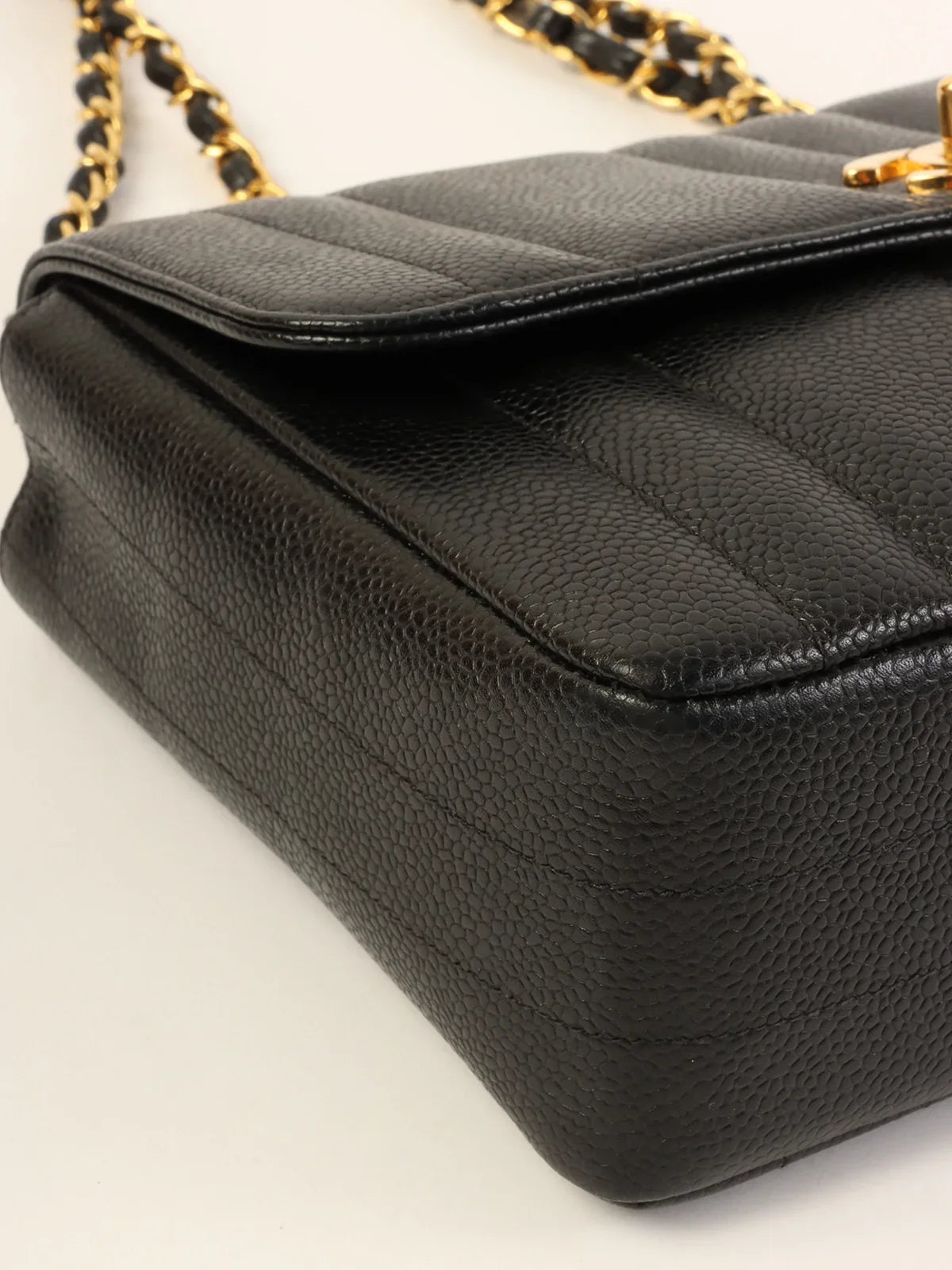 CHANEL Around 1995 Made Caviar Skin Mademoiselle Stitch Turn-Lock Chain Bag Black