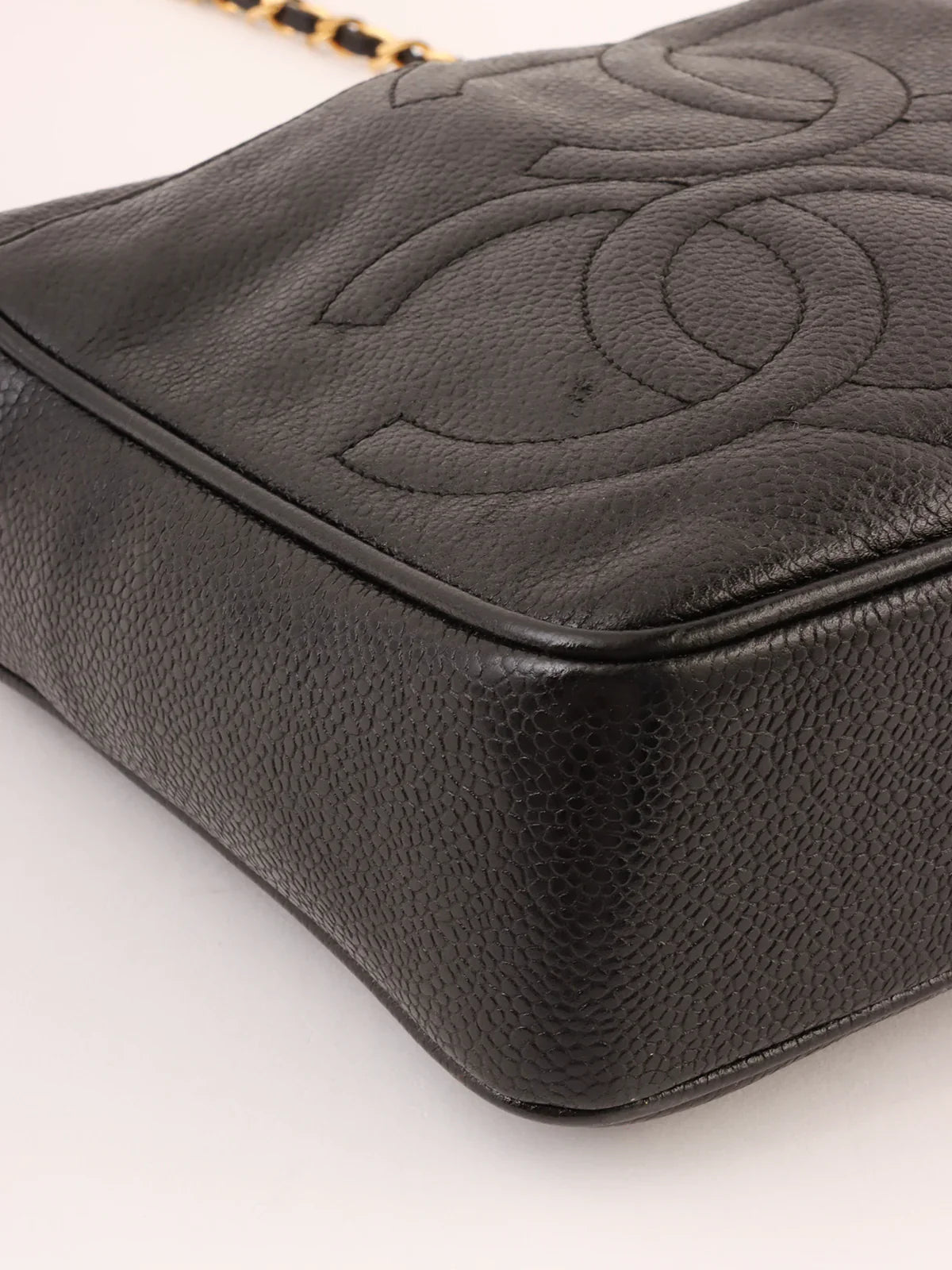 CHANEL Around 1995 Made Triple Cc Mark Stitch Chain Shoulder Bag Black