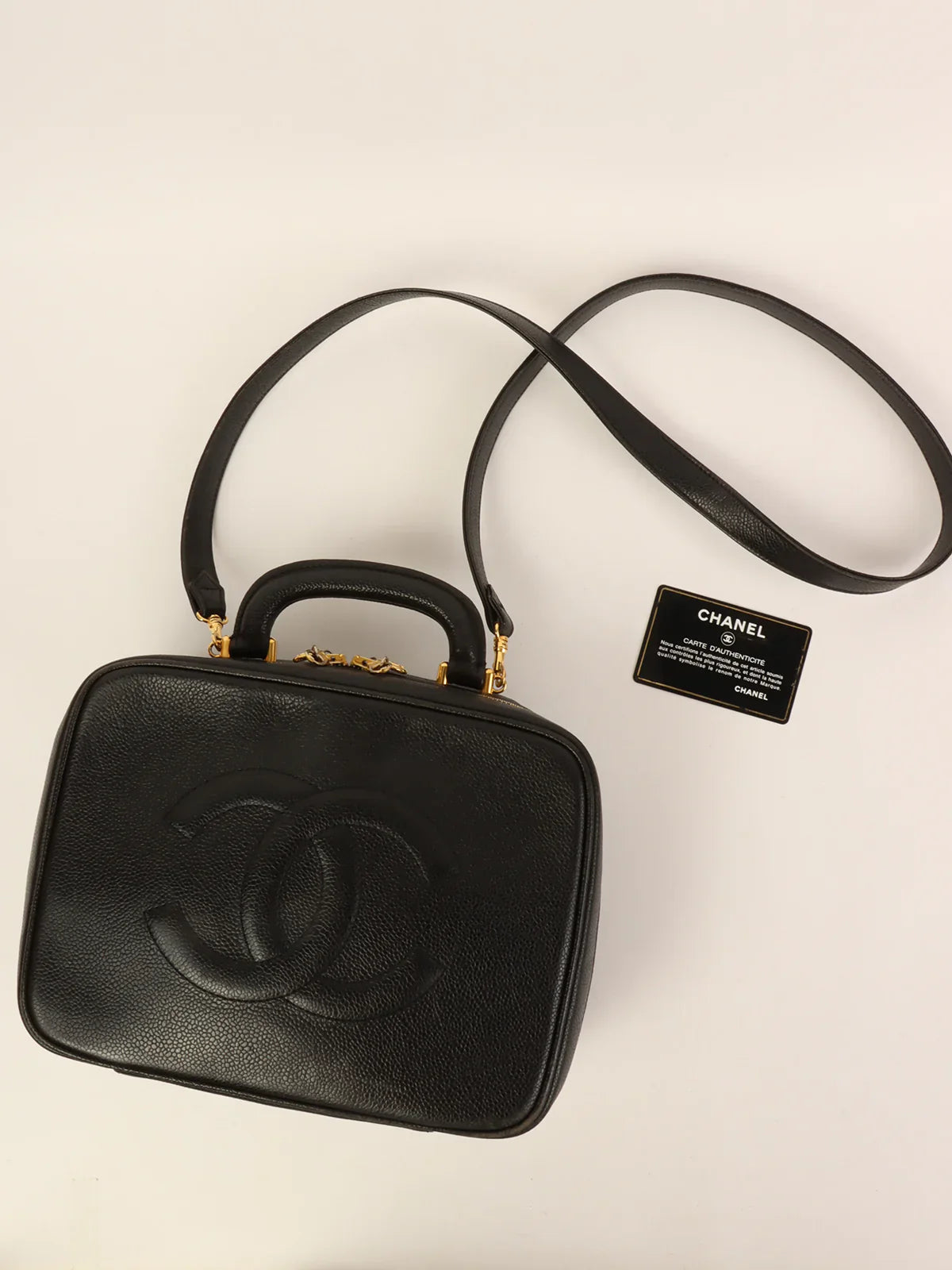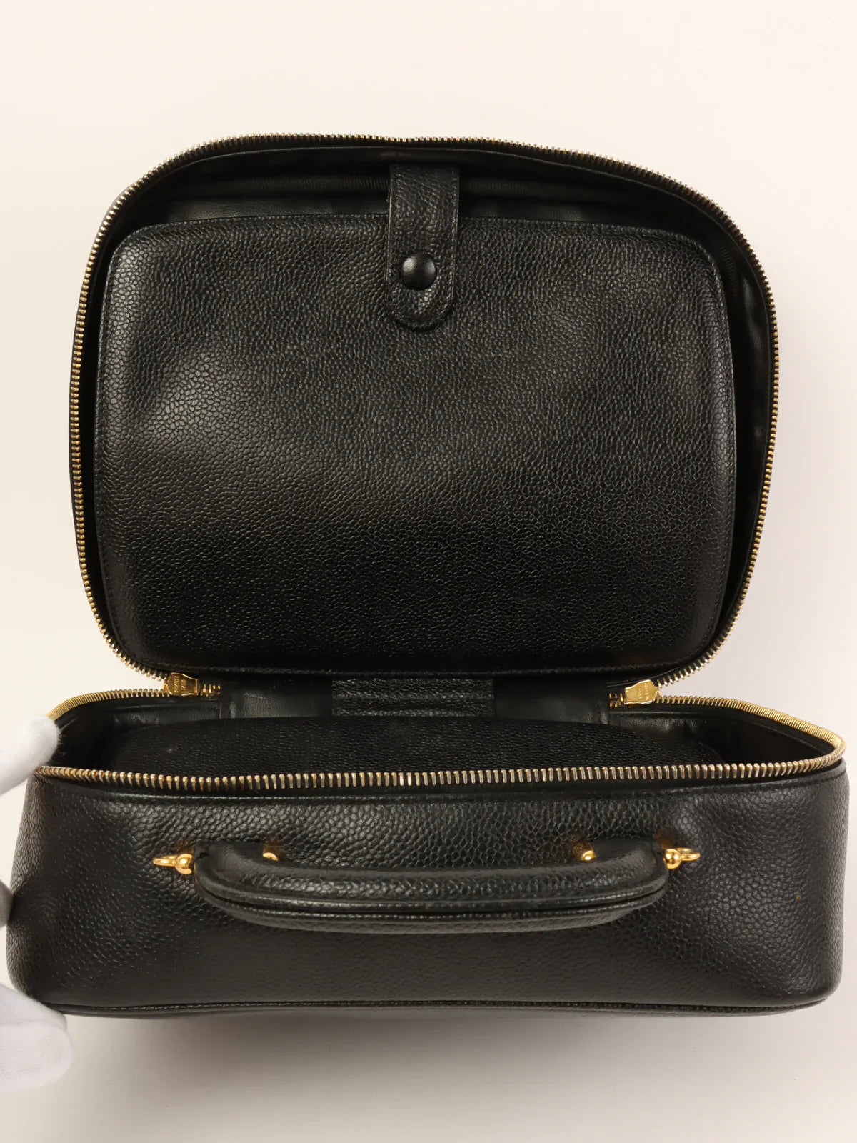 Top Quality Chanel Around 1997 Made Caviar Skin Cc Mark Stitch 2Way Vanity Black