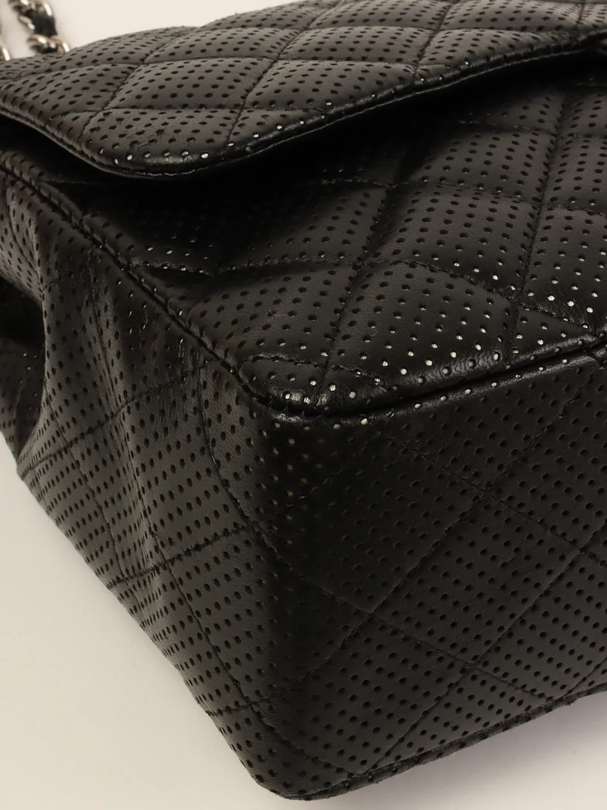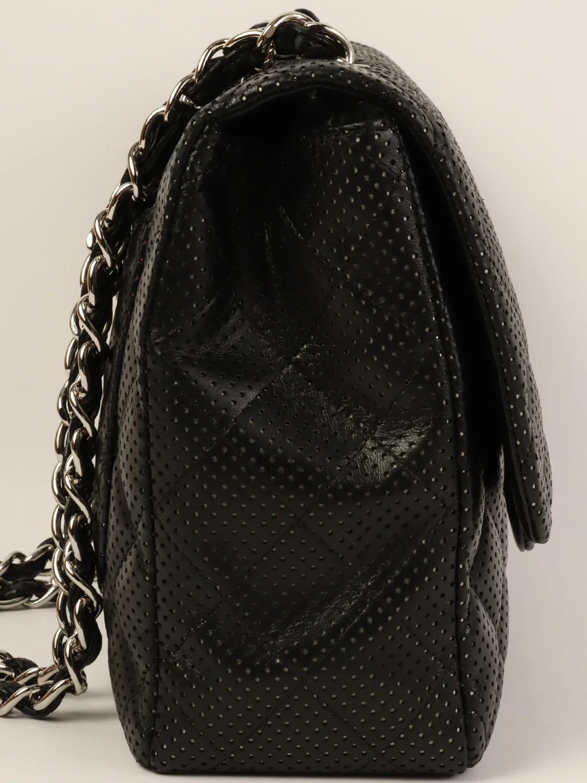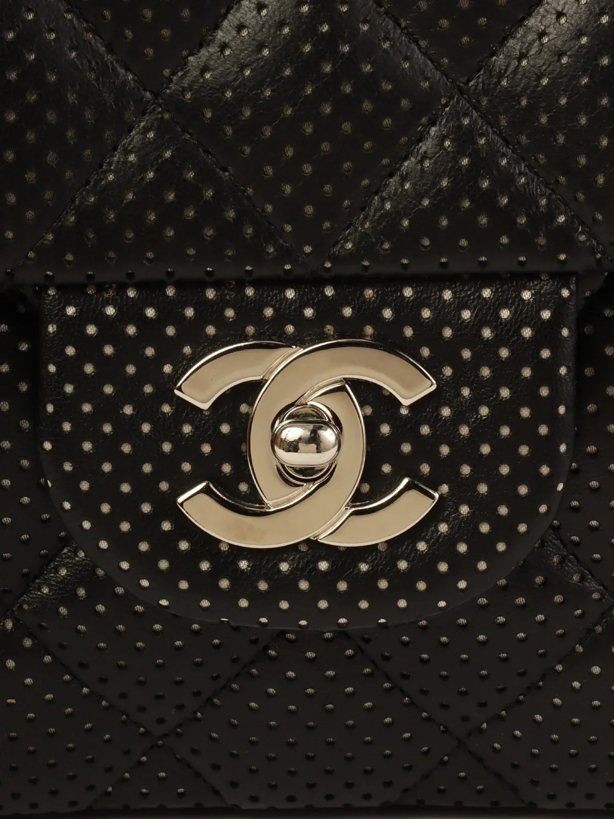 Top Quality Chanel Around 2007 Punching Leather Turn-Lock Chain Shoulder Bag Black