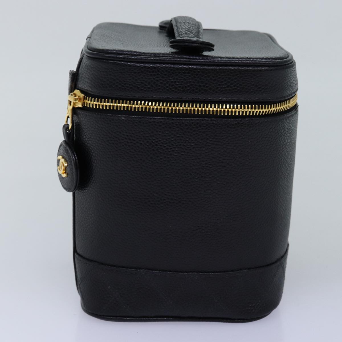 CHANEL Bicolole Vanity Cosmetic Pouch Caviar Skin Black CC Auth yk12738