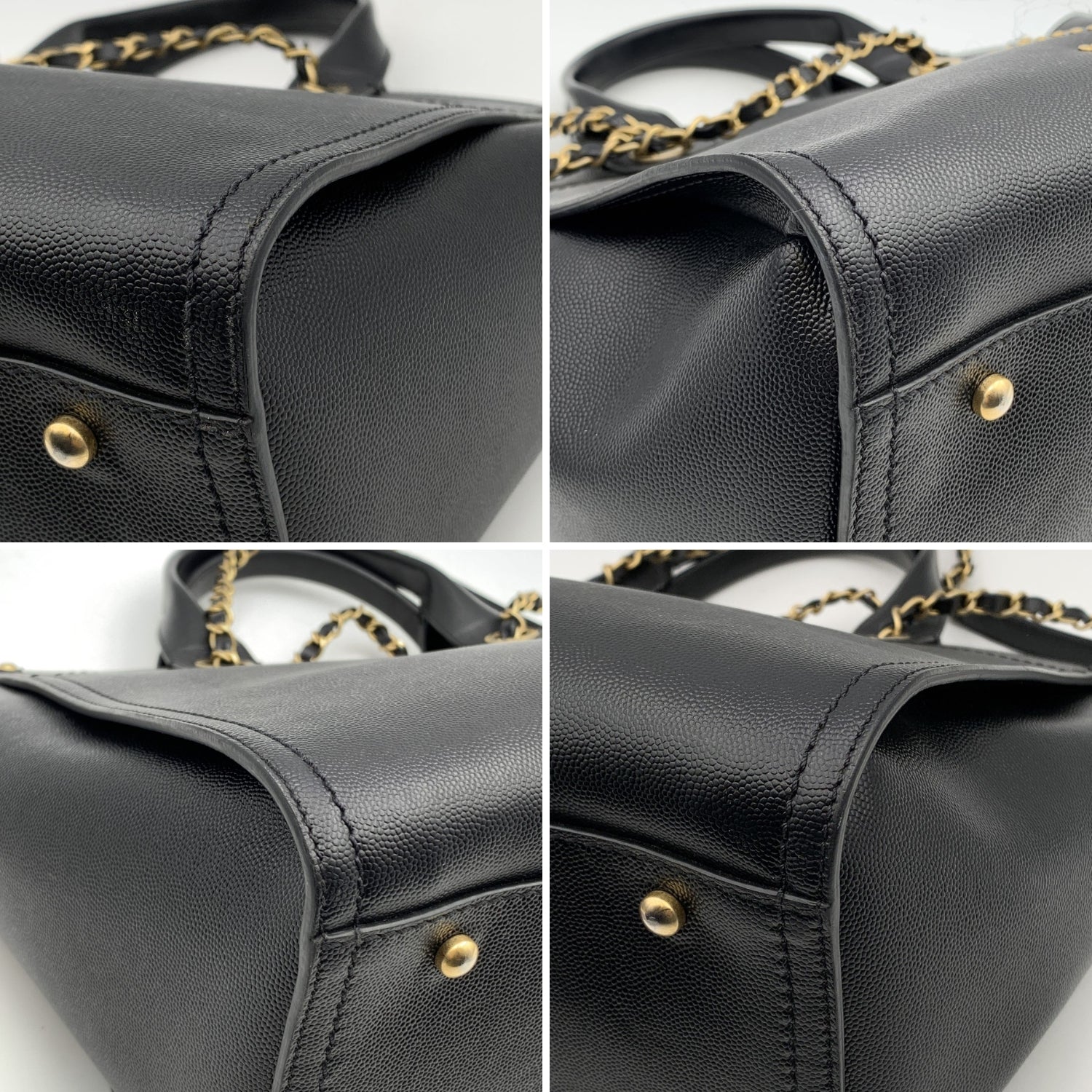 The Bag Is Detailed With Studded 'Chanel Cc Paris' Writing On The Front.