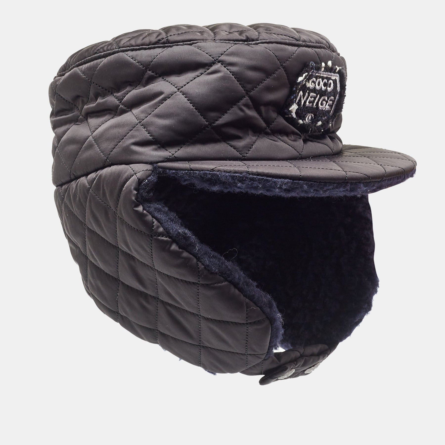 CHANEL Black Quilted Coco Neige Trapper Hat M