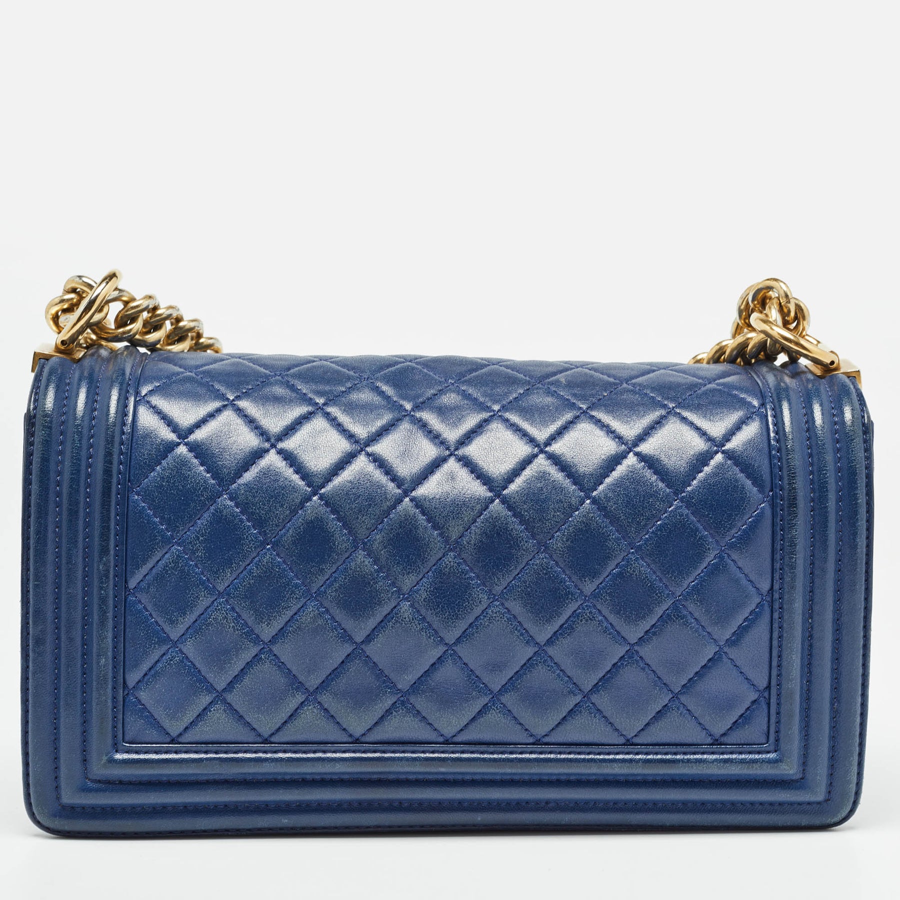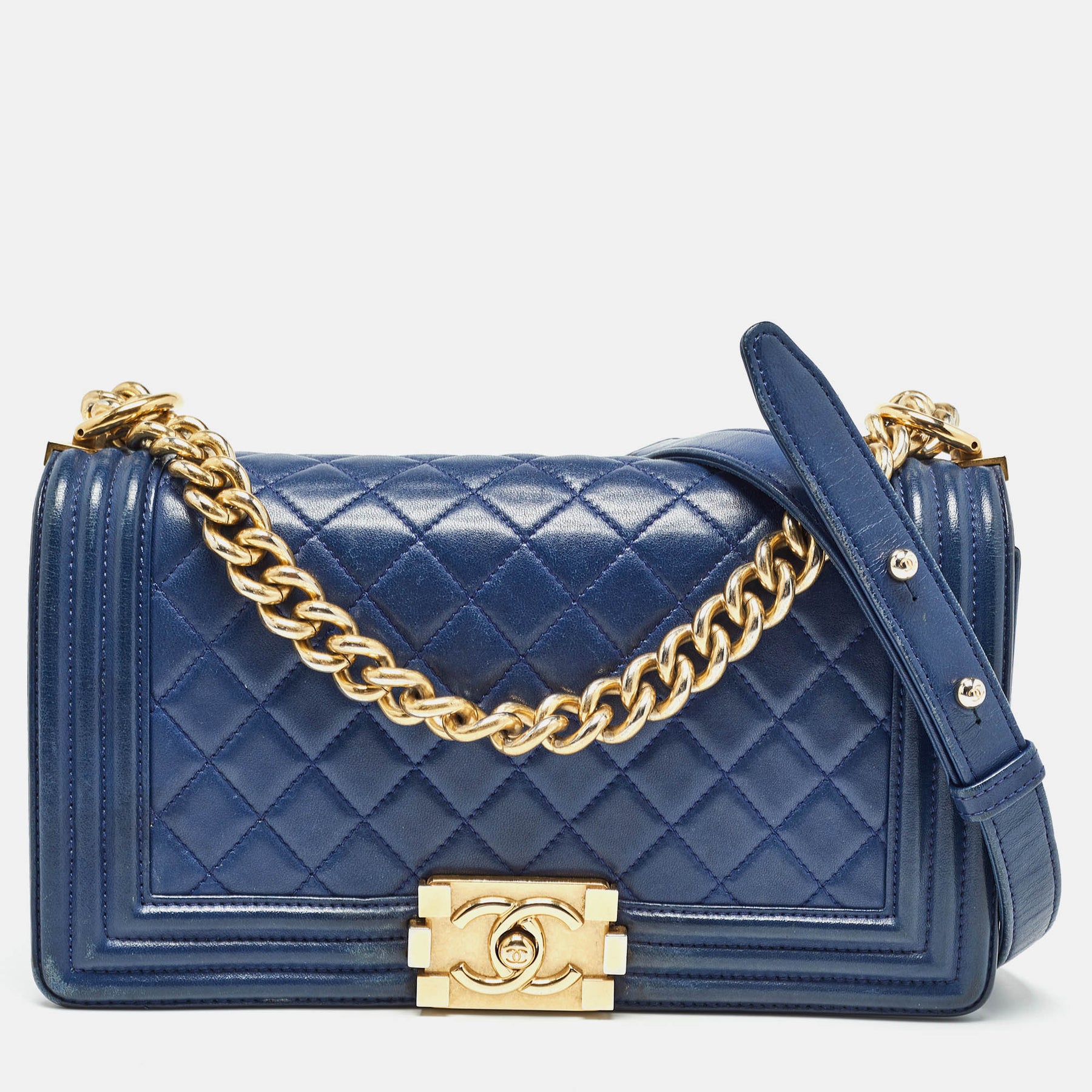 CHANEL Blue Quilted Leather Medium Boy New Bag