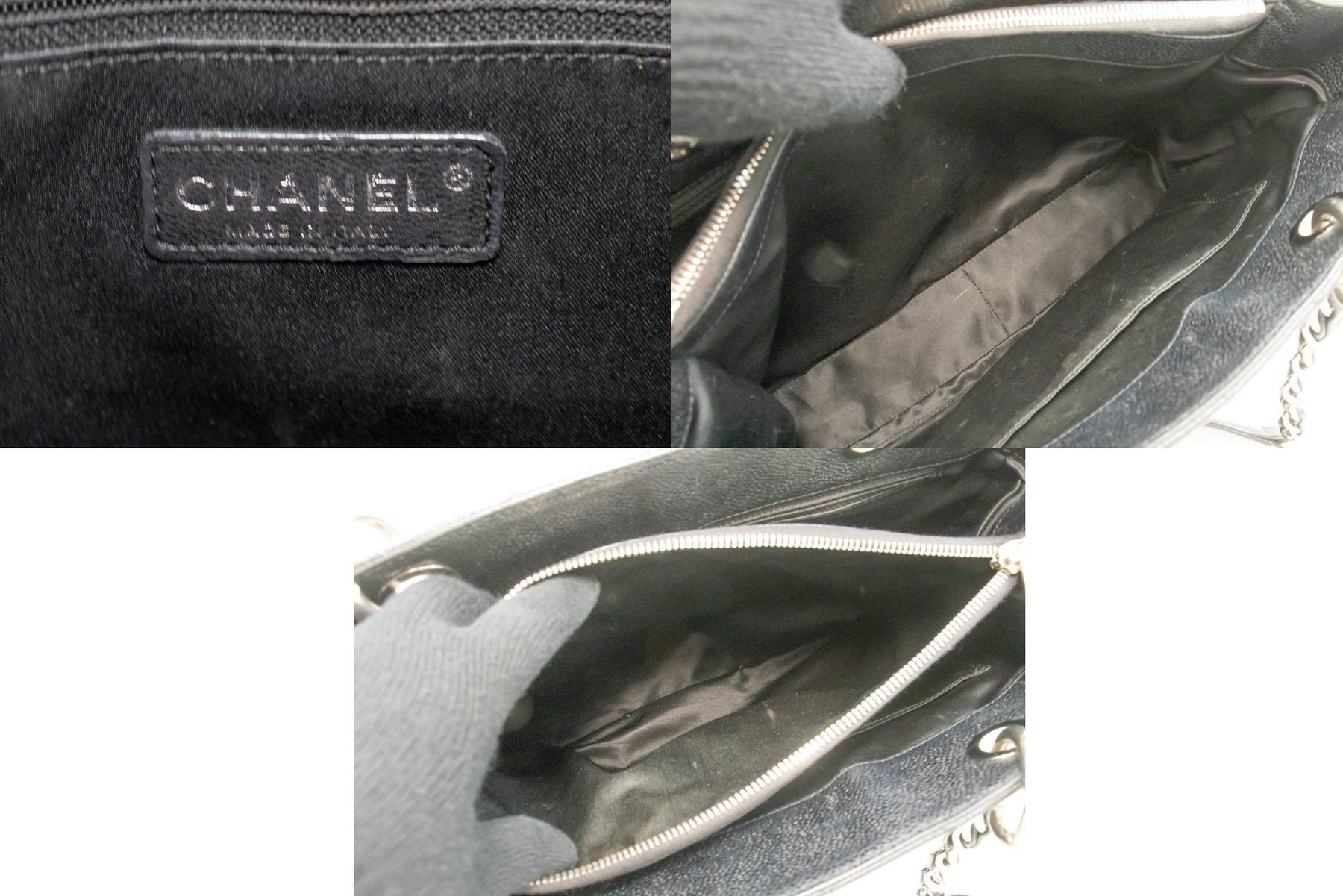 An CHANEL Caviar GST 13" Grand Shopping Tote Chain Shoulder Bag Black.