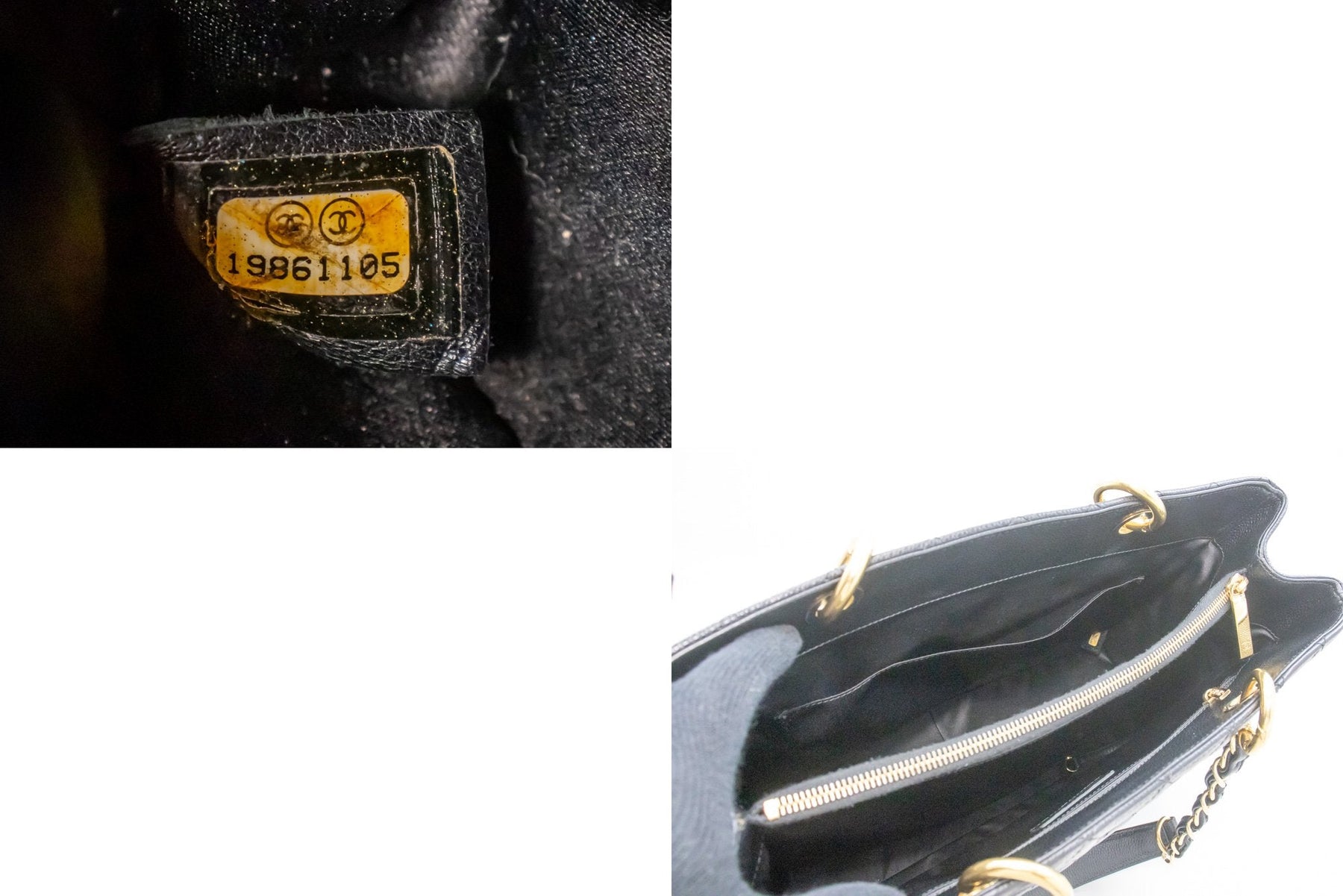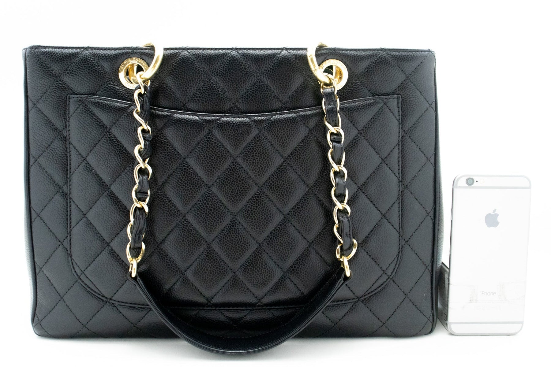 An CHANEL Caviar GST 13" Grand Shopping Tote Chain Shoulder Bag Black.