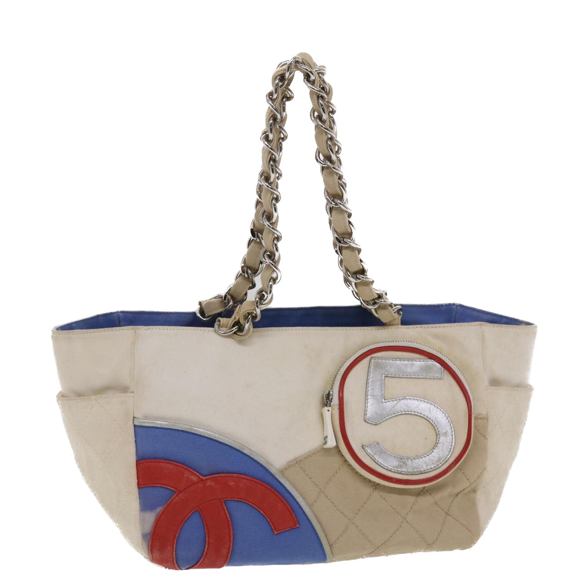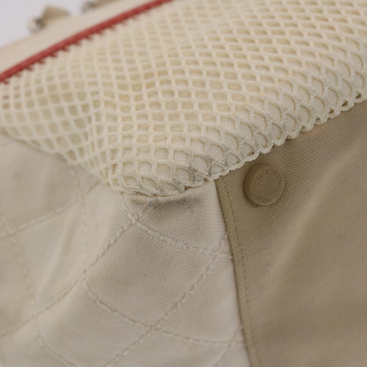 CHANEL Chain Tote Bag No5 Canvas White CC Auth 49901