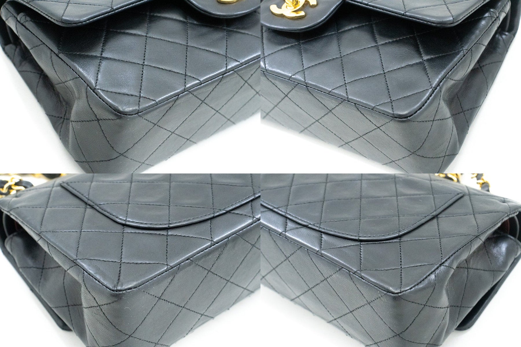 An CHANEL Classic Double New 9" Chain Shoulder Bag Black made of black Lambskin.
