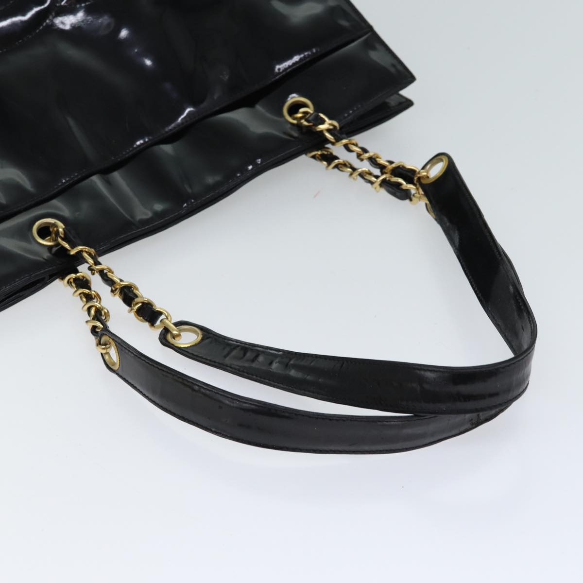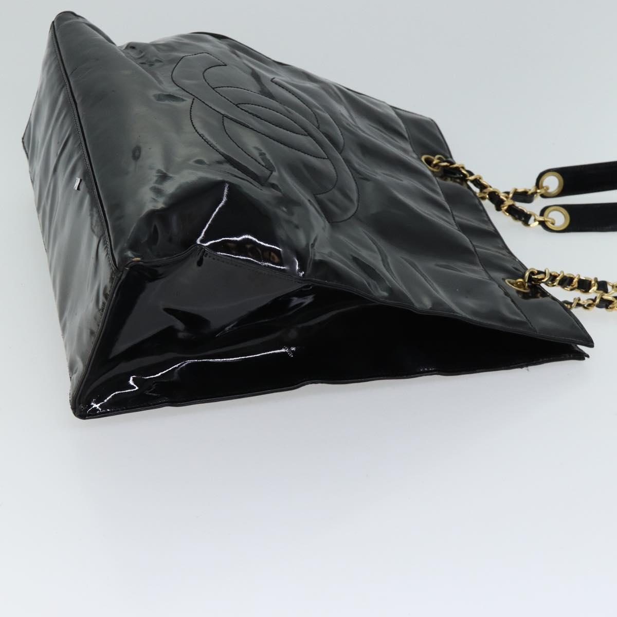 CHANEL COCO Mark Chain Shoulder Bag Patent Black CC Auth bs13327