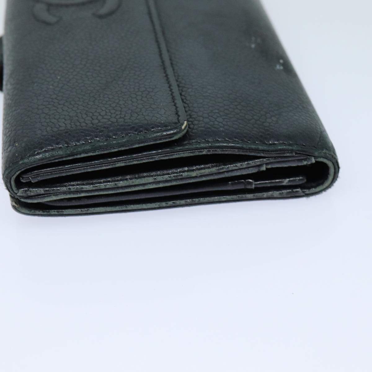 CHANEL COCO Mark Wallet Caviar Skin Black CC Auth bs16186