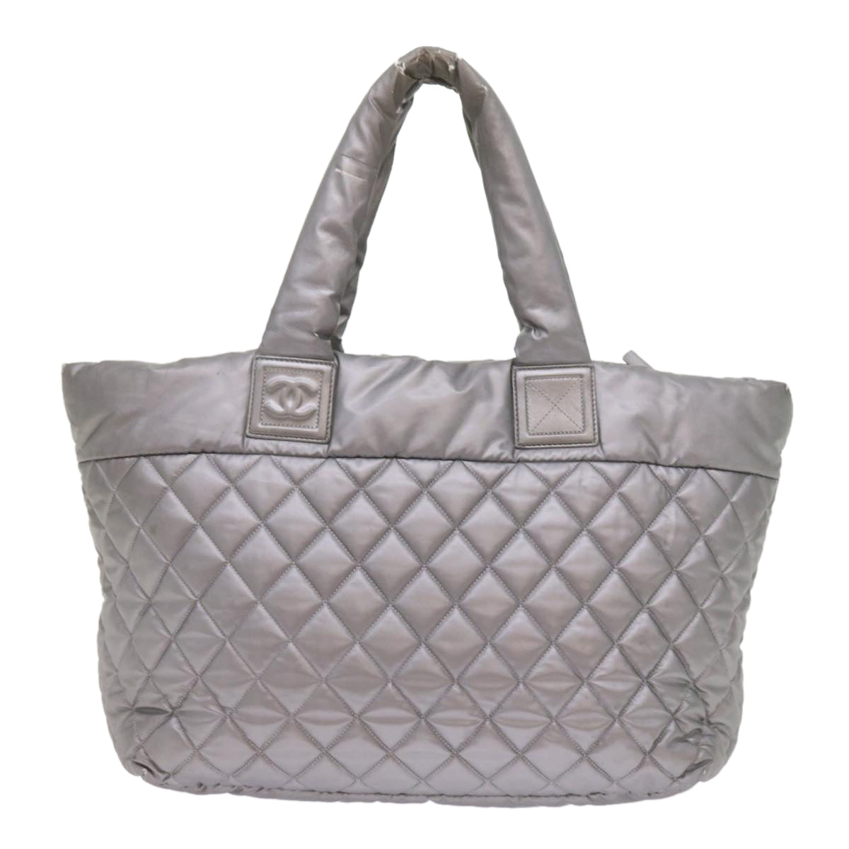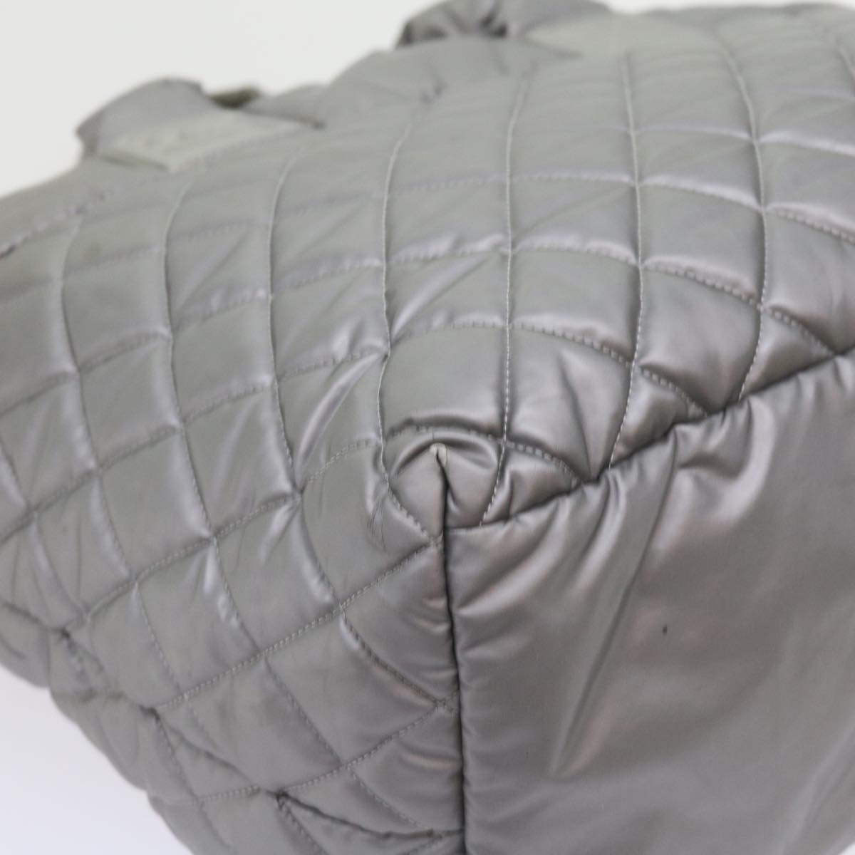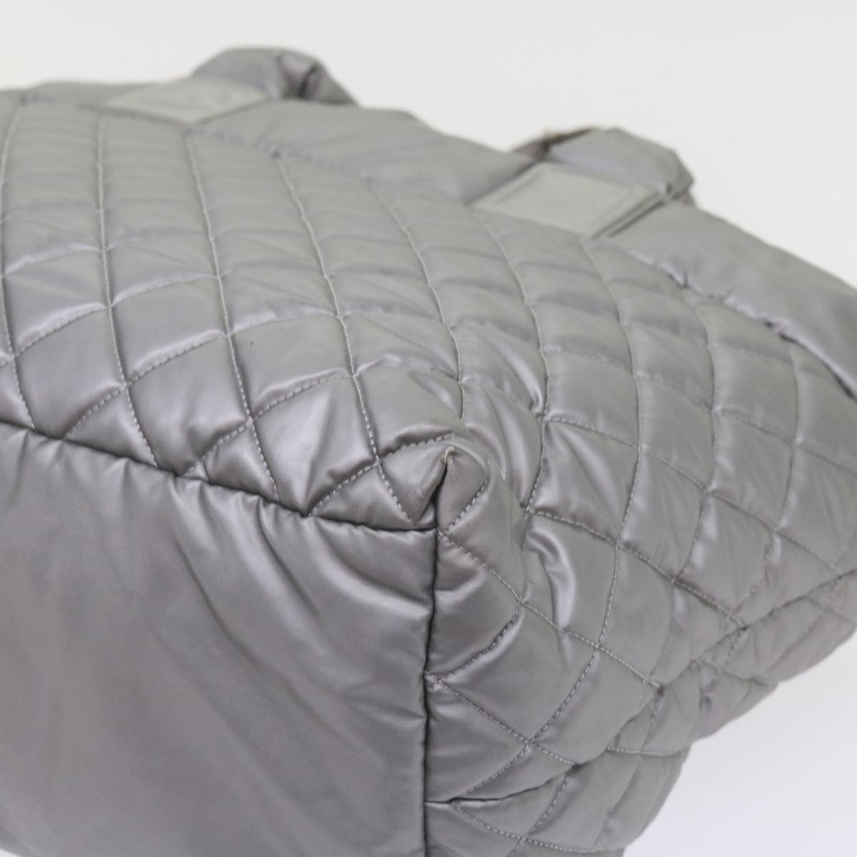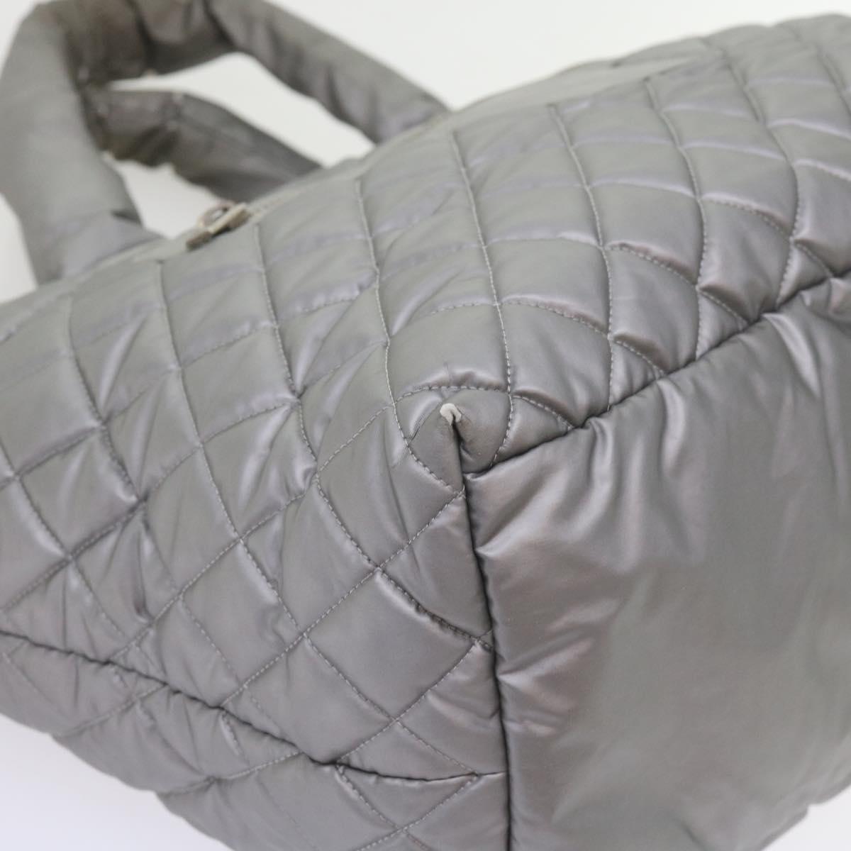 CHANEL Cococoon Hand Bag Patent leather Silver CC Auth bs10169