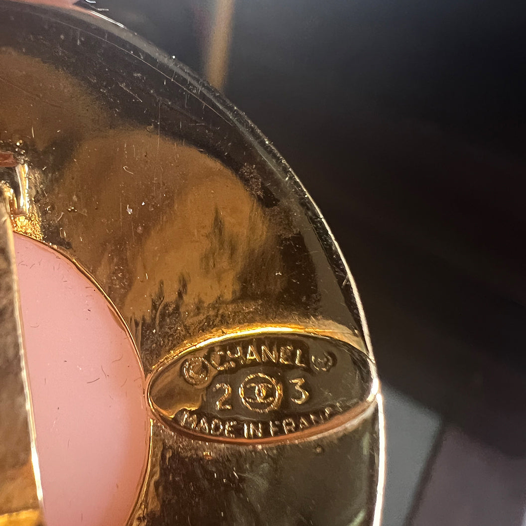 Displaying large coral Cabochons, these Chanel earrings from 1984-1992 bold gold-toned circular earrings feature a star and rhinestone detailing.