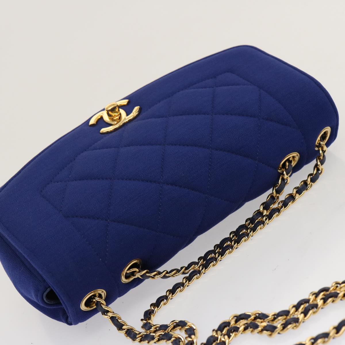 CHANEL Diana Matelasse Chain Shoulder Bag Canvas Blue CC Auth 70391A