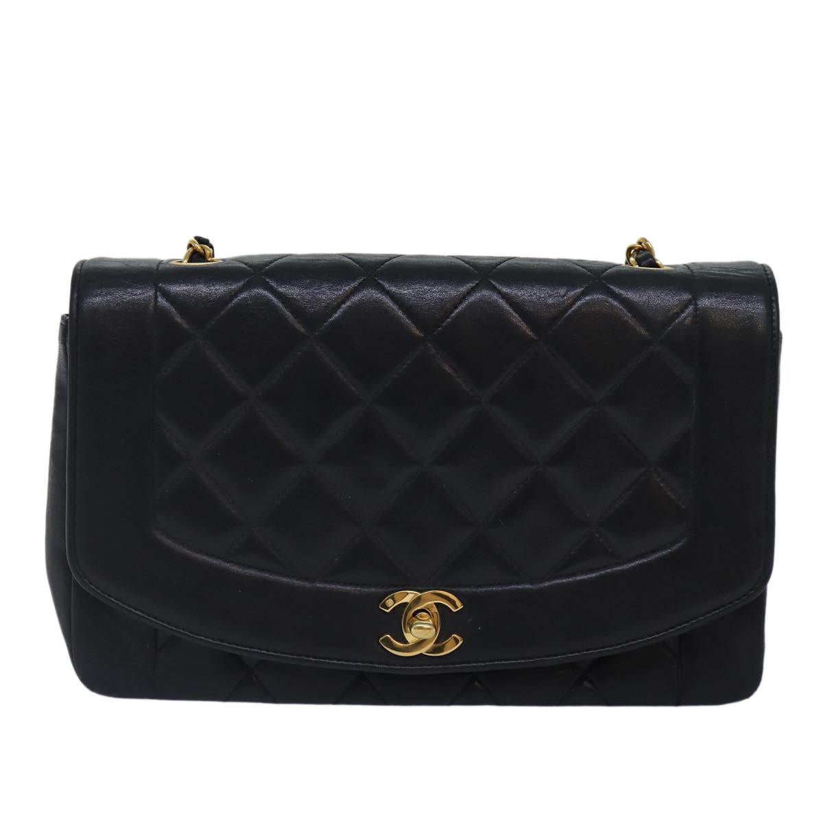 Top Quality Chanel Diana Matelasse Chain Shoulder Bag Lamb Skin Black CC Auth 87740A