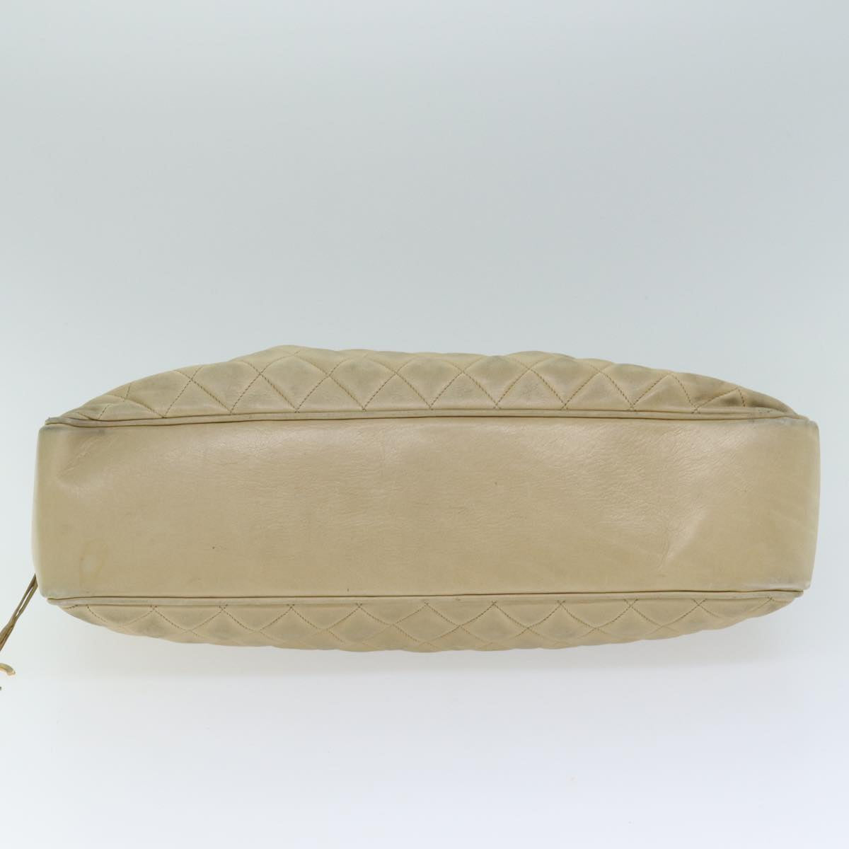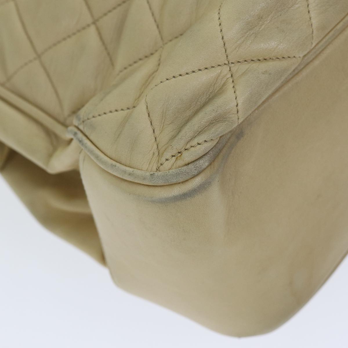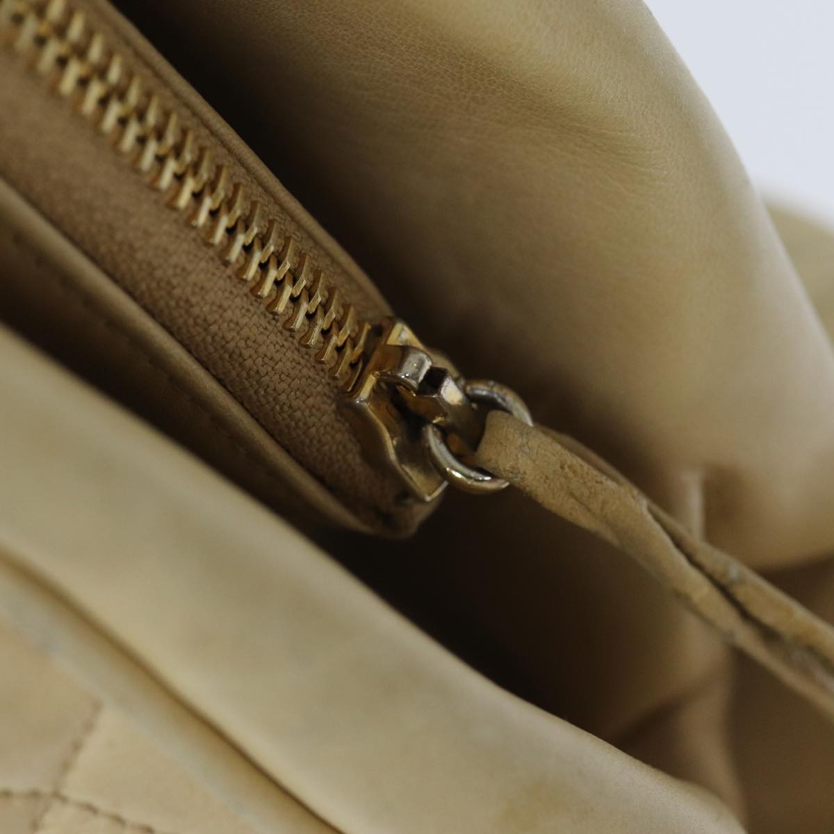 CHANEL Matelasse Chain Shoulder Bag Lamb Skin Beige CC Auth bs15118