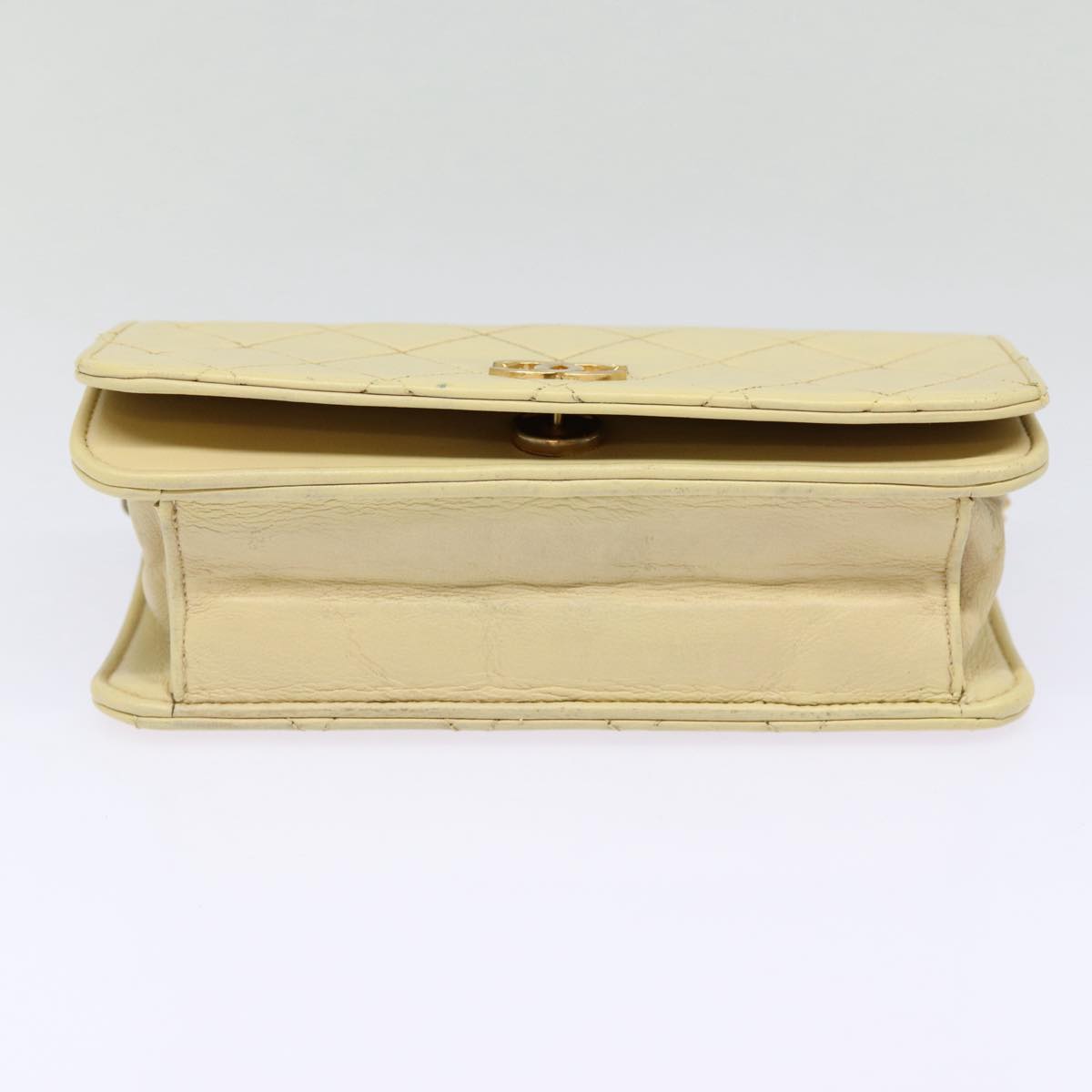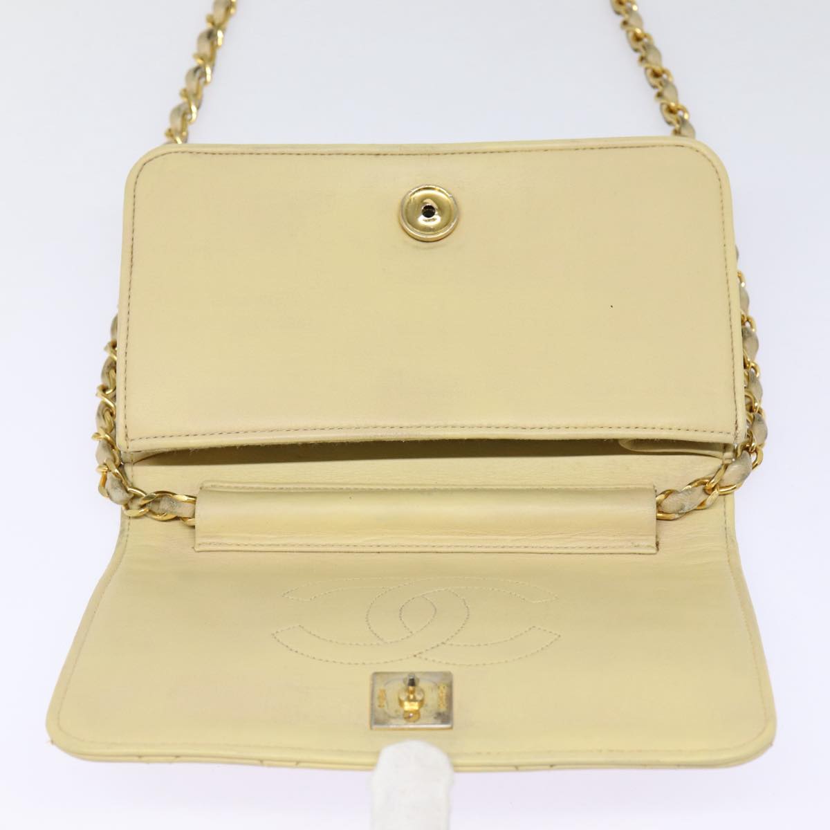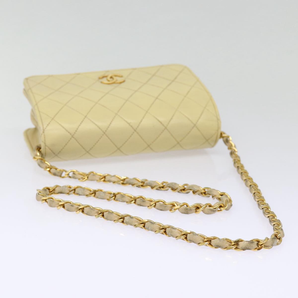 CHANEL Matelasse Chain Shoulder Bag Lamb Skin Beige Gold CC Auth bs17432