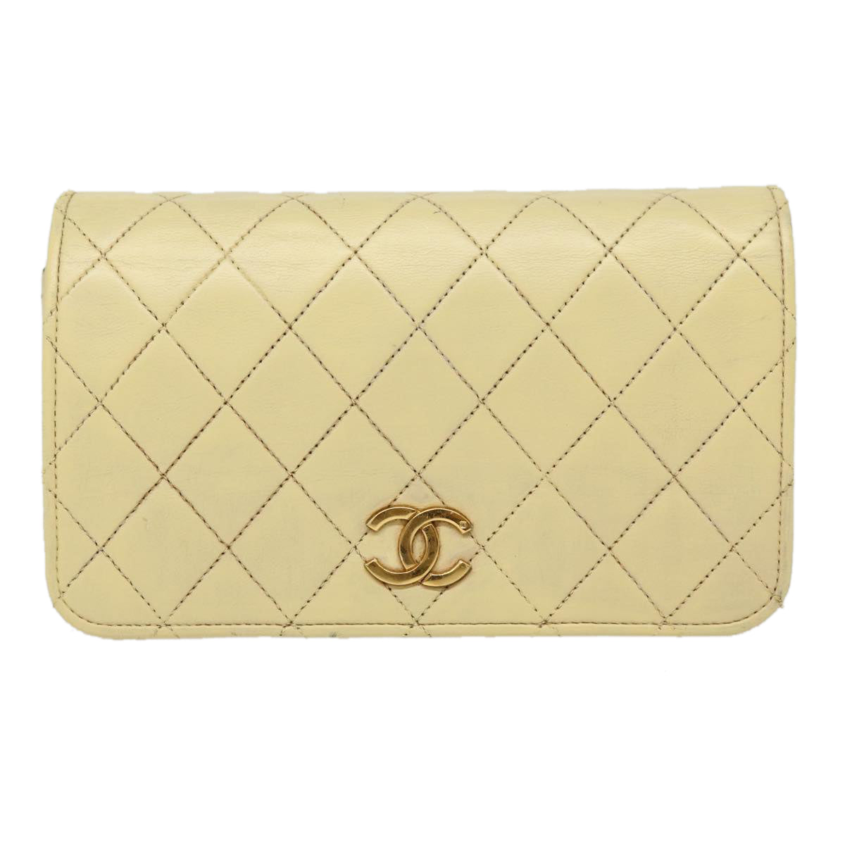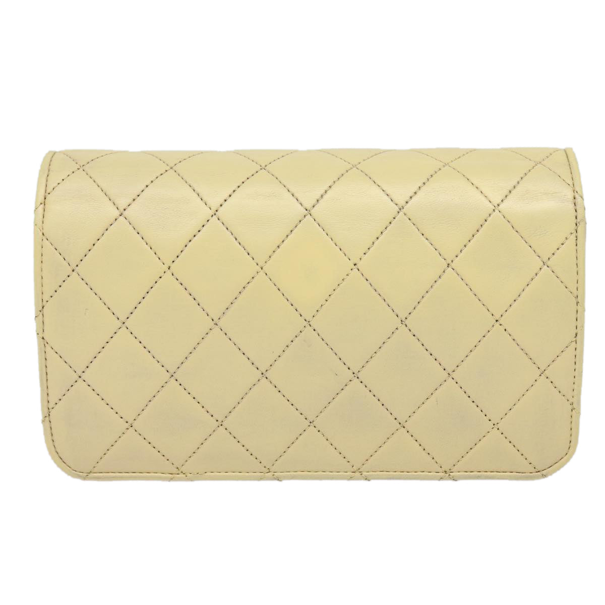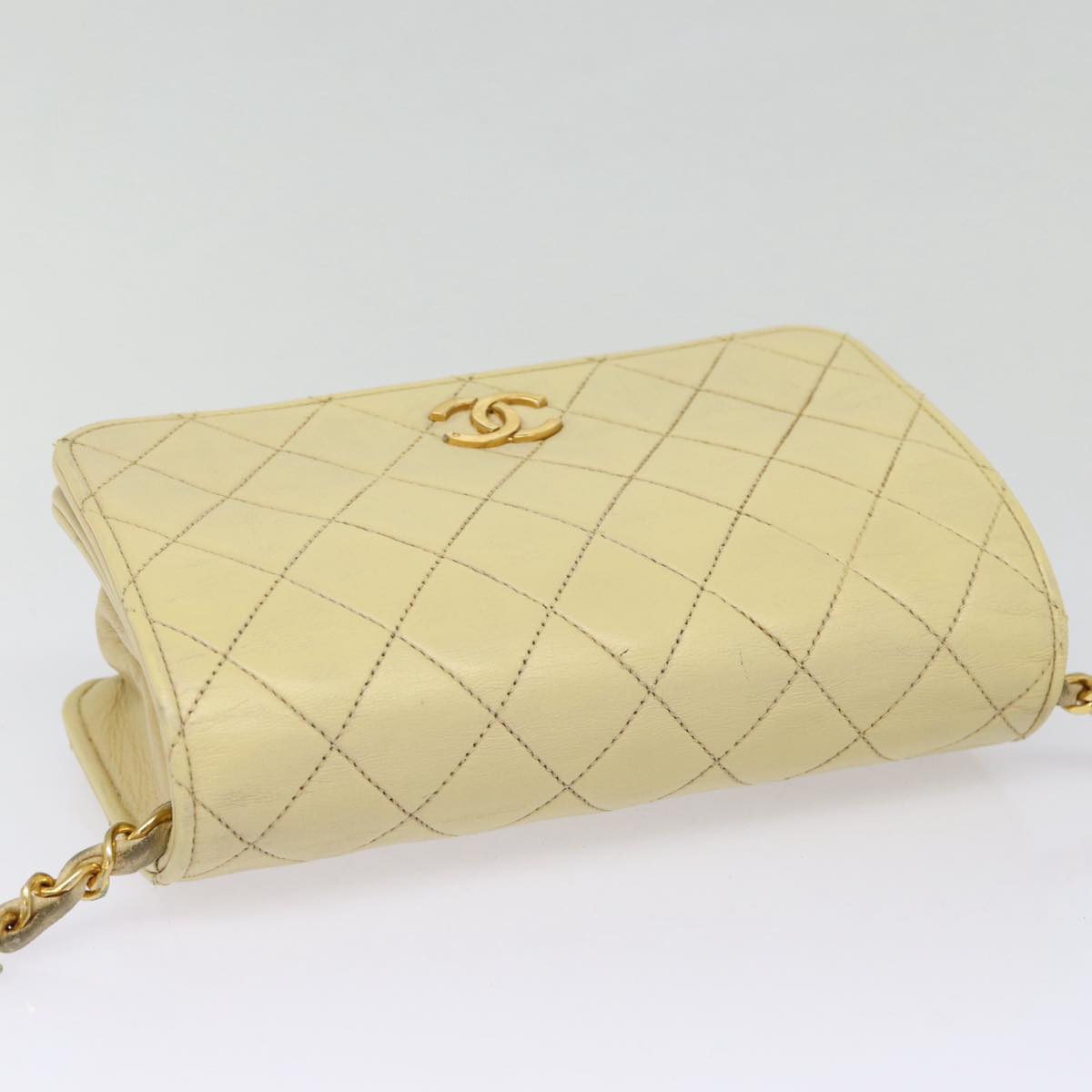 CHANEL Matelasse Chain Shoulder Bag Lamb Skin Beige Gold CC Auth bs17432