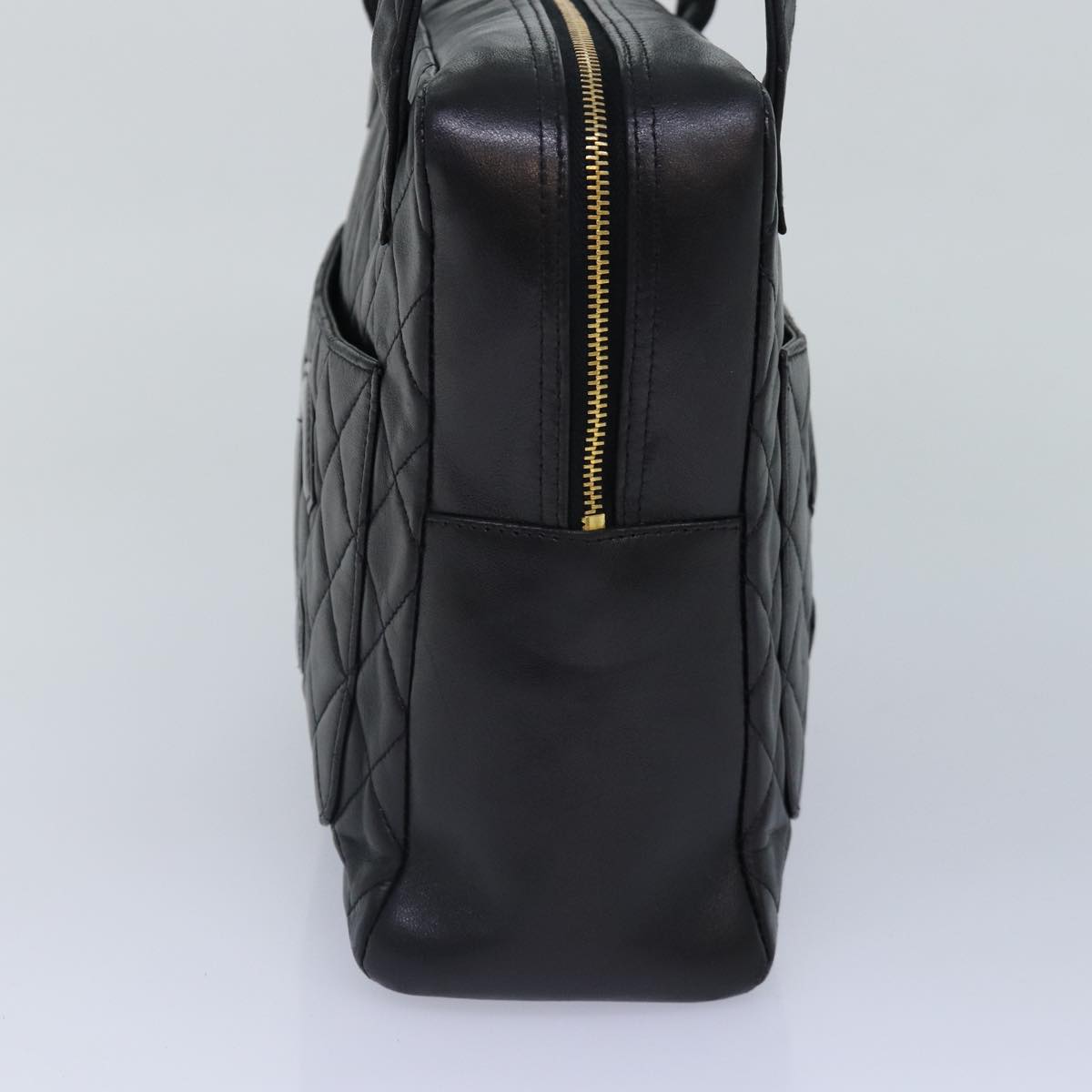 CHANEL Matelasse COCO Mark Hand Bag Lamb Skin Black Gold CC Auth kk300