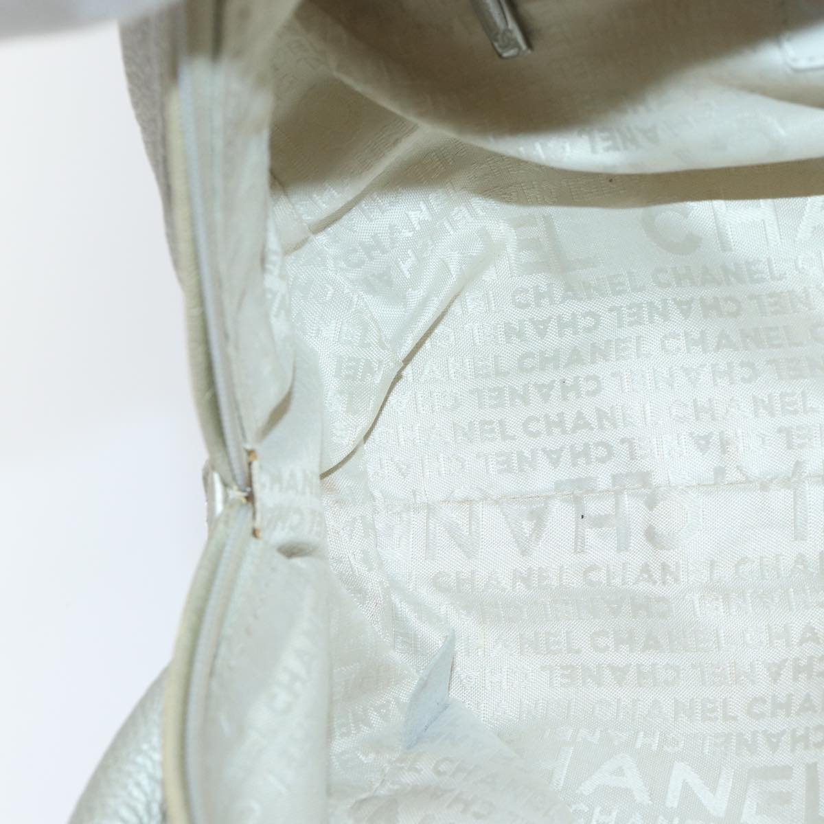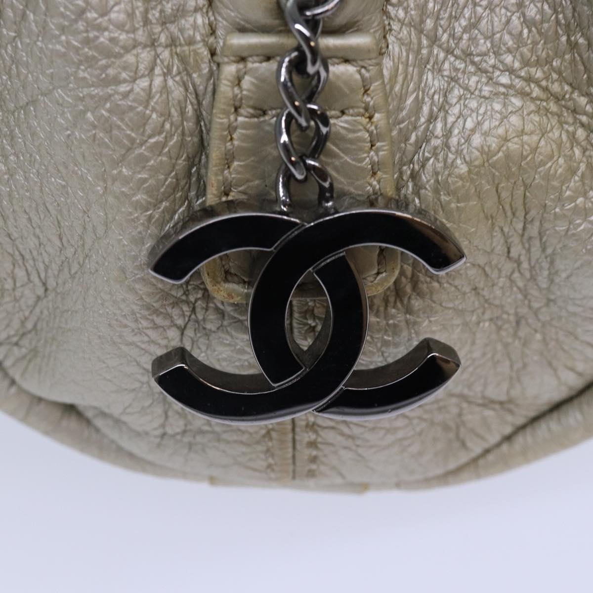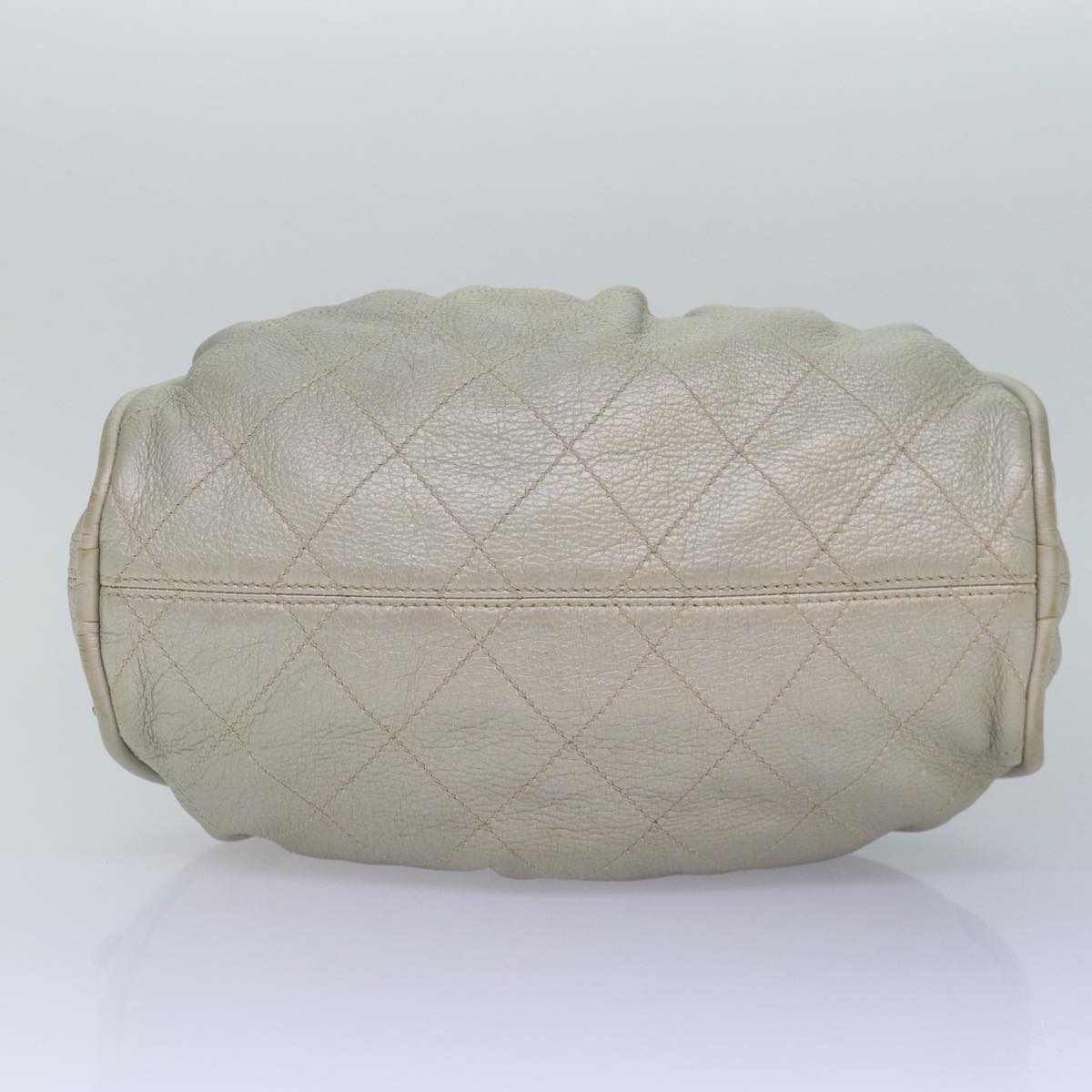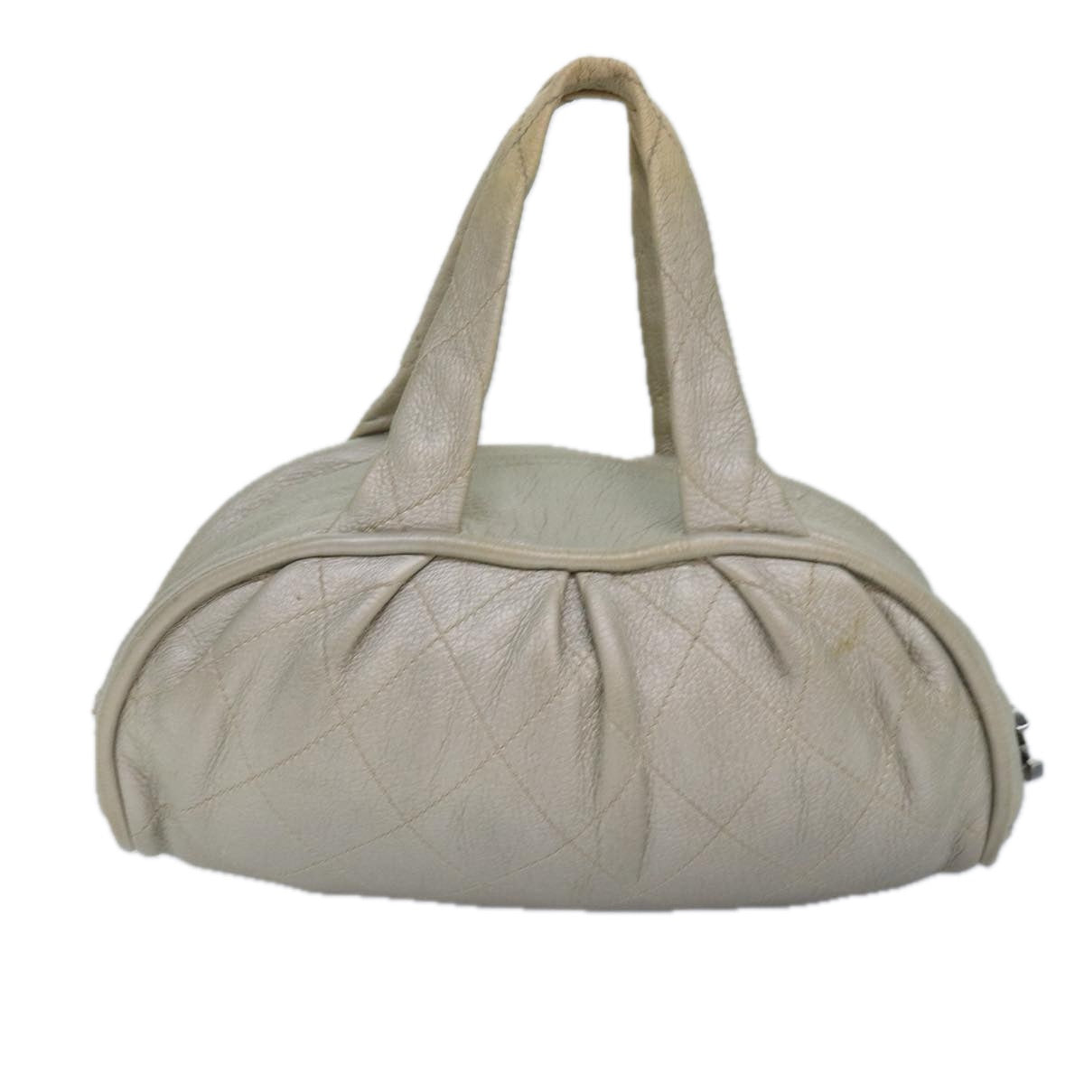 CHANEL Matelasse Hand Bag Leather Silver CC Auth yb675
