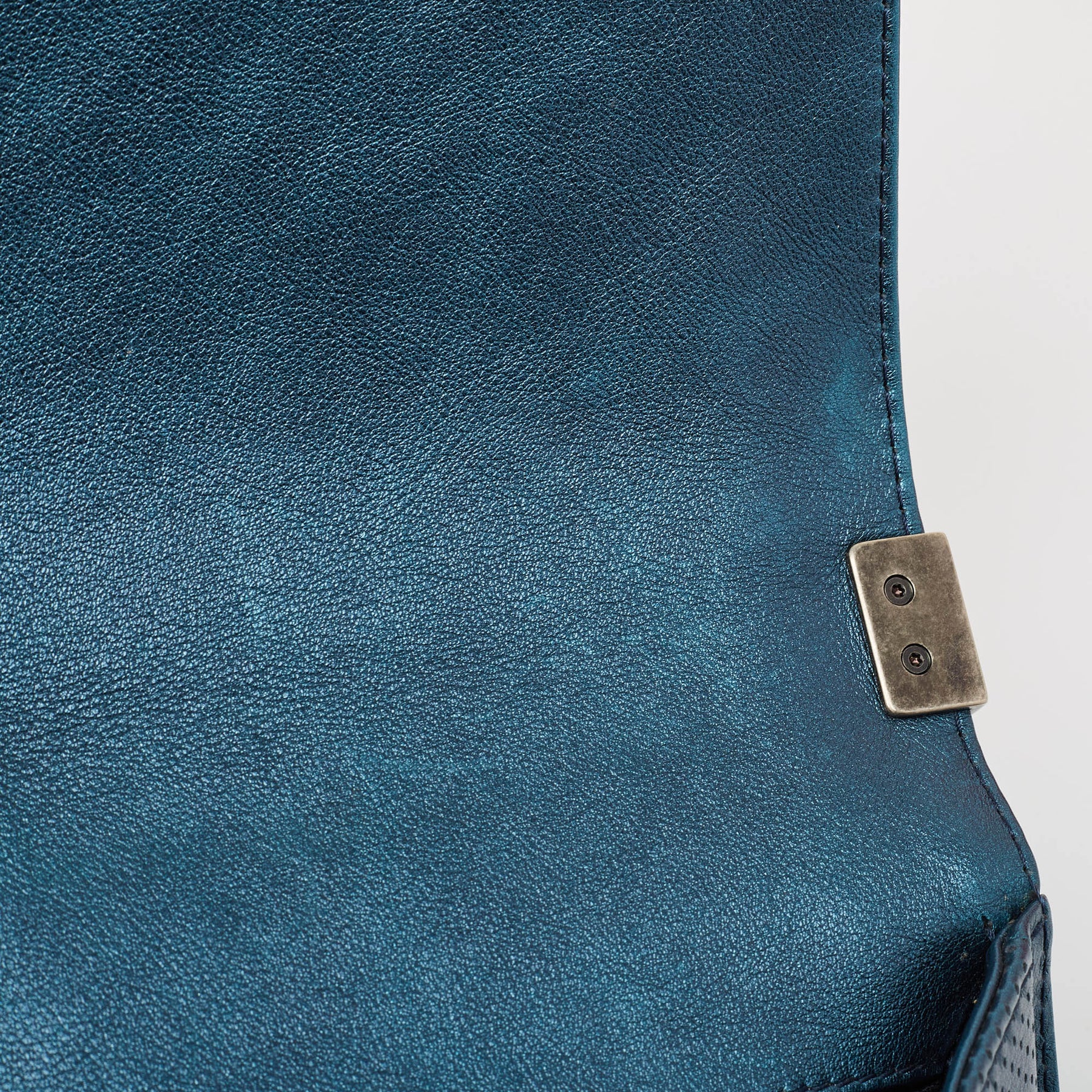 CHANEL Metallic Blue Perforated Quilted Leather Medium Boy New Bag