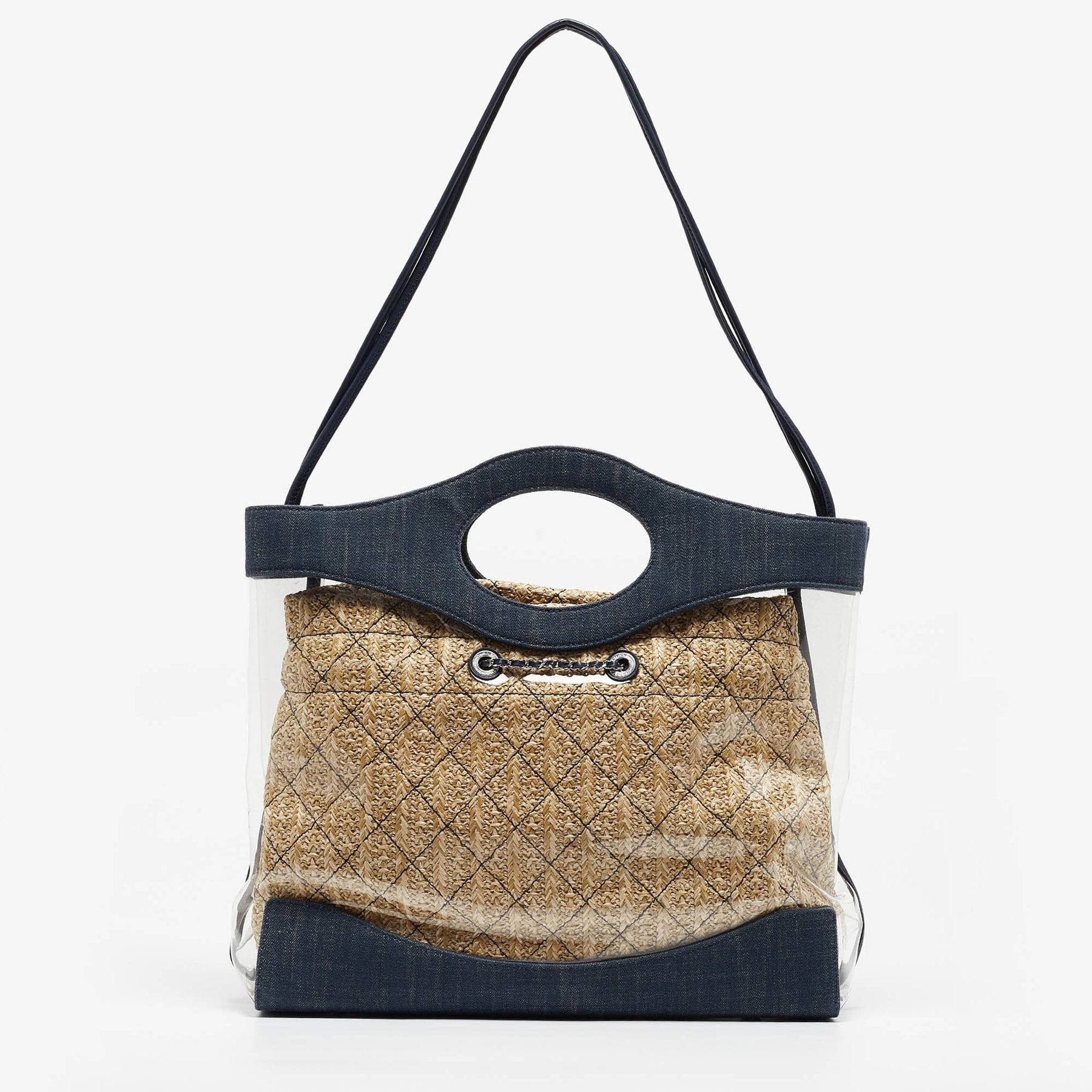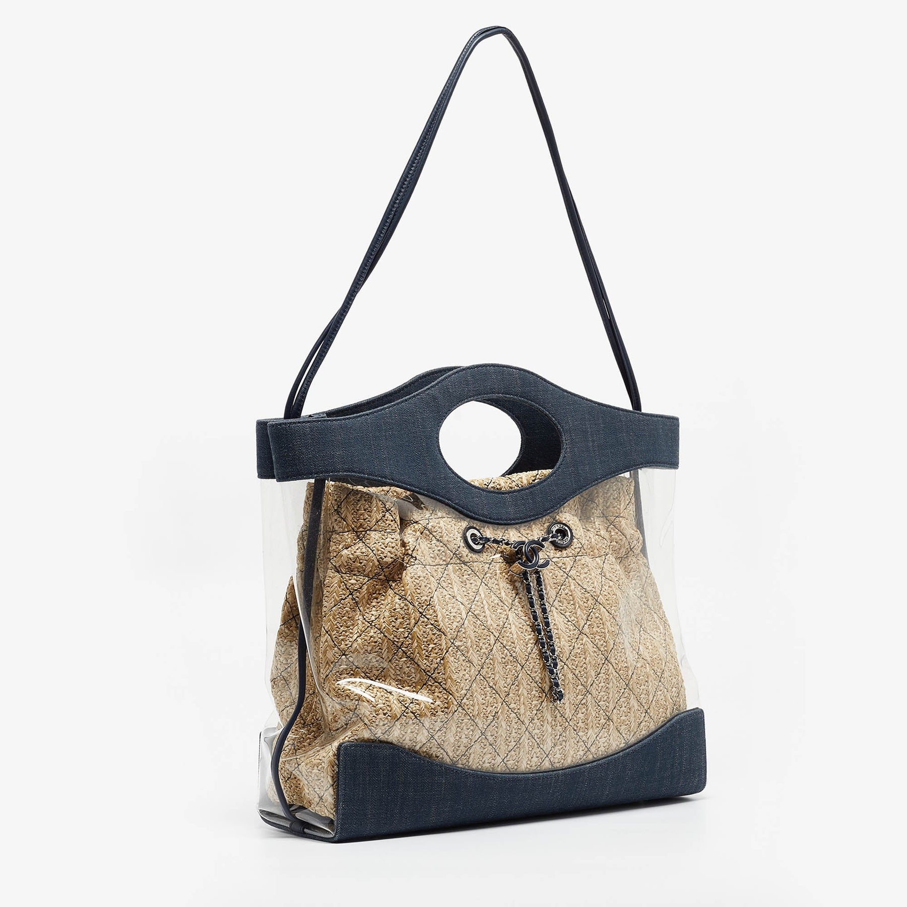 CHANEL Navy Blue PVC and Denim 31 Shopping Bag