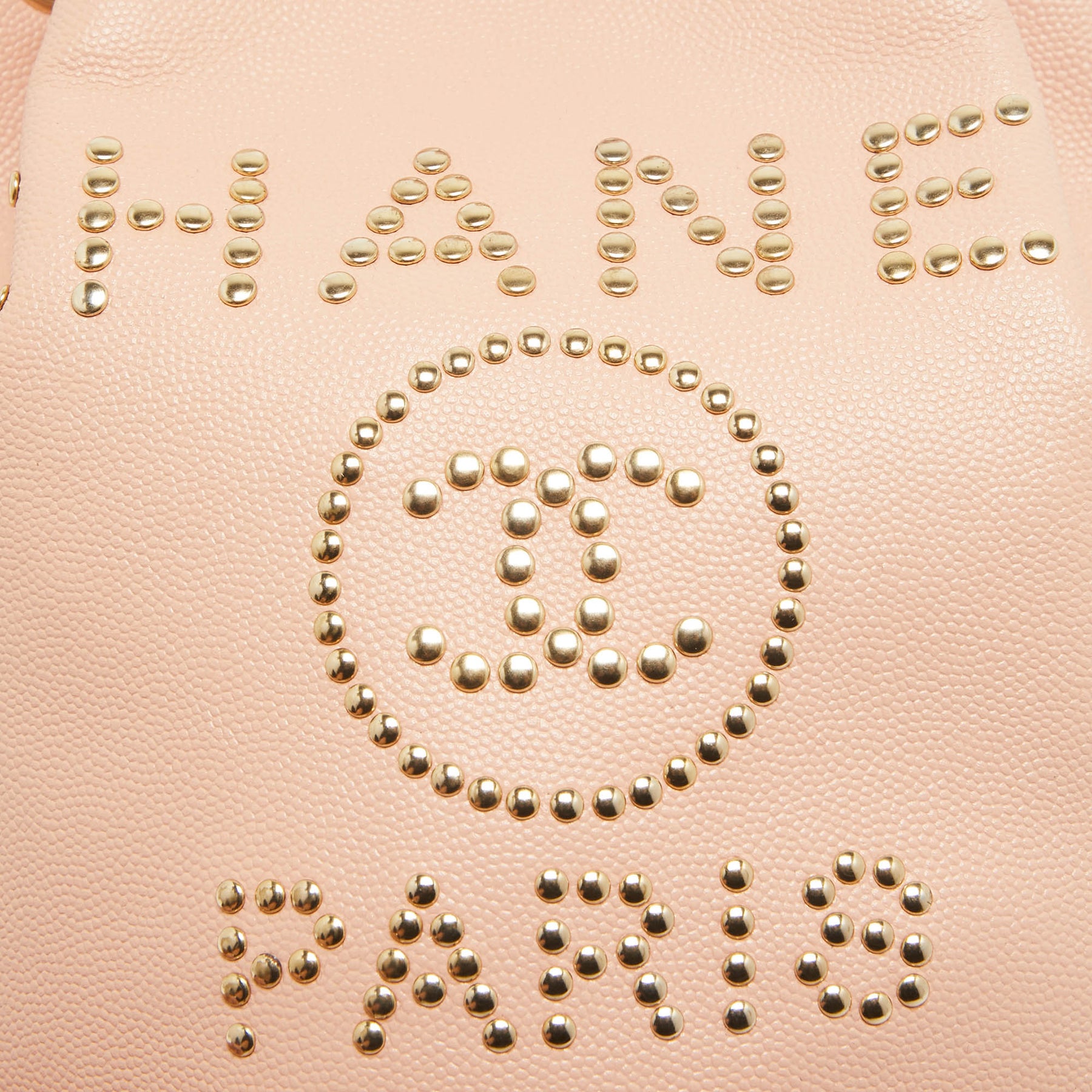 CHANEL Peach Leather Logo Studs Deauville Drawstring Bucket Bag